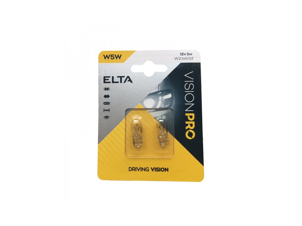 12V 5W celosklo W2,1 x 9,5d, Elta, blistr (2 ks)