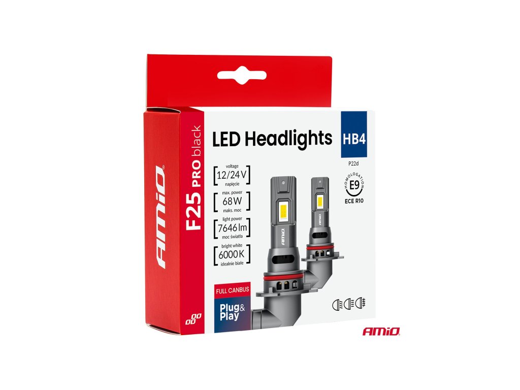 LED žárovky Headlights F25 PRO BLACK Edition HB4 12/24V jsou pokročilý světelný zdroj určený pro světlomety automobilů. Vybavené systémem FULL CANBUS, zajišťují plnou kompatibilitu s instalacemi vozidel vybavených kontrolou prasklých žárovek. Model F25 PRO BLACK Edition sada nabízí maximální výkon 68W a světelný tok 7646 lm, což se promítá do výjimečně intenzivního a rovnoměrného osvětlení vozovky. Barva 6000K zaručuje efekt bílého, denního světla, zlepšující kontrast a viditelnost. Technické parametry: Typ patice: HB4 Napětí: 12/24V Maximální výkon: 68W (2x 34w) Světelný tok: 7646 lm (2x3823lm) Teplota barvy: 6000K Systém: FULL CANBUS Série: F25 PRO BLACK Edition LED mohou vzhledem k odlišným proudově-napěťovým charakteristikám způsobit, že se u některých modelů automobilů zobrazí tzv. chyba spálené žárovky. Systém Canbus má 95% pokrytí vozidel a bohužel ne vždy funguje bezchybně. Pokud je vaše vozidlo vybaveno přísnou kontrolou změny osvětlení, doporučujeme namontovat dodatečné odpory Canbus nebo zakoupit žárovky z řady Full Canbus. Zákaz používání na veř. komunikacích (LED není určena pro vnější osvětlení vozidel)Buďte první, kdo napíše příspěvek k této položce.