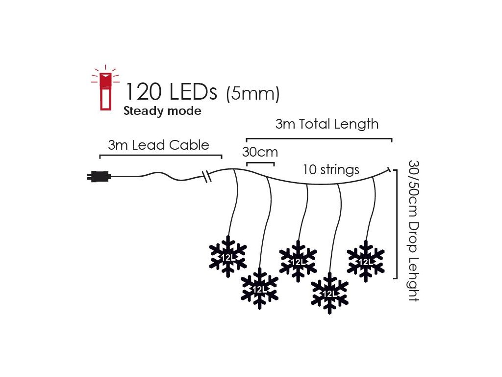 ACA DECOR LED Vánoční závěs Sněhové vločky, 3x3m, studená bílá, IP44, 120 LED