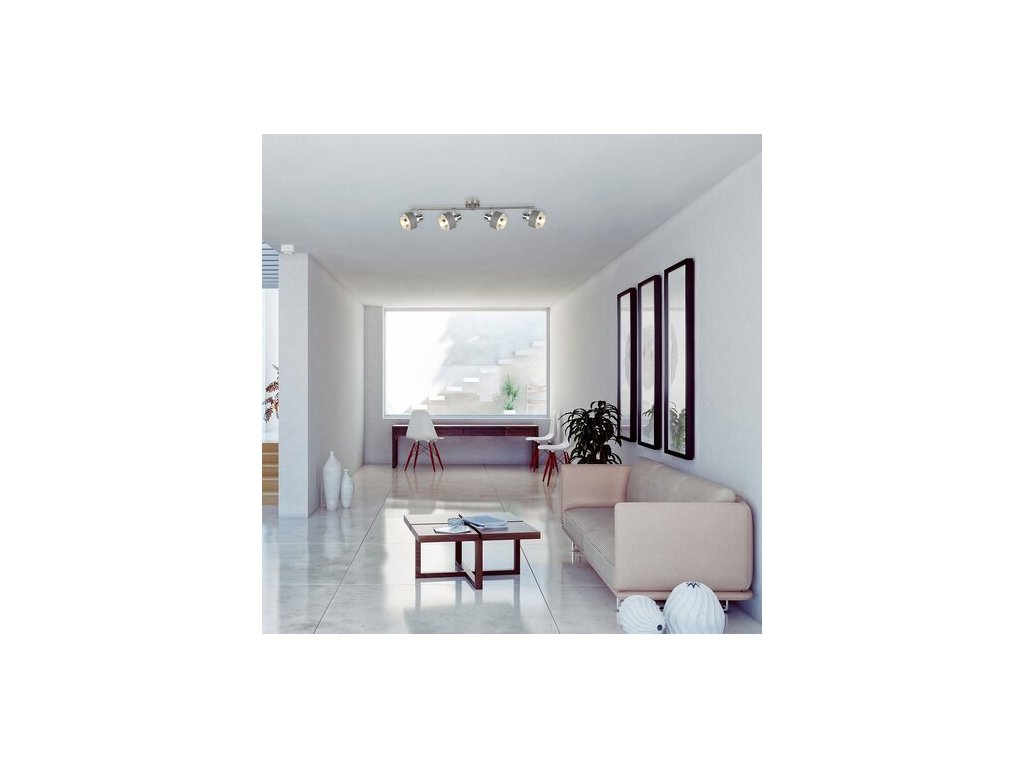 Bodové svítidlo Basil se čtyřmi světly se vyznačuje moderním, elegantním designem a barvami. Kovové a plastové nástěnné svítidlo se svou barevnou kombinací saténově chromově-stříbrný dub je obzvlášť zajímavé hlavou svítidla složené z válcových prvků a stínítkem s krytem v dubové barvě. Hlavy svítidla jsou umístěny na dvou rovných kovových tyčích, které začínají vpravo a vlevo od dekoračního podstavce. Primárně doporučujeme svítidlo Basil používat v prostorných obývacích pokojích, kde ho můžete připevnit buď ke zdrojům teplého nebo přírodního bílého světla, podle toho, jaký efekt chcete dosáhnout. Bodové svítidlo lze použít se čtyřmi světelnými zdroji s výkonem každého do 10 W, patice typu E14. Rozměry svítidla Basil vybaveného kulatým dekorativním podstavcem jsou: šířka 740 mm, vzdálenost od stropu 170 mm. Tento model se dodává bez žárovek.