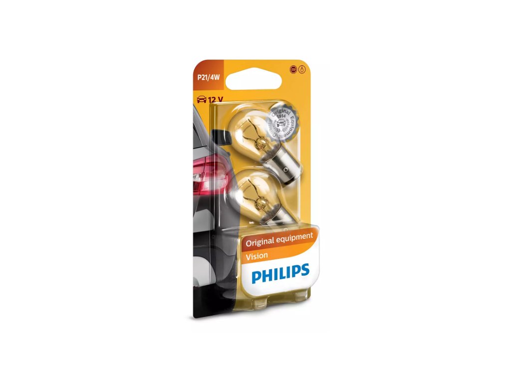 Autožárovka - P21/4W (patice BAZ15d), výkon 4 W, napětí 12 V, světelný tok 440 lm, životnost 250 h, 1 žárovka v balení, pro běžné použití