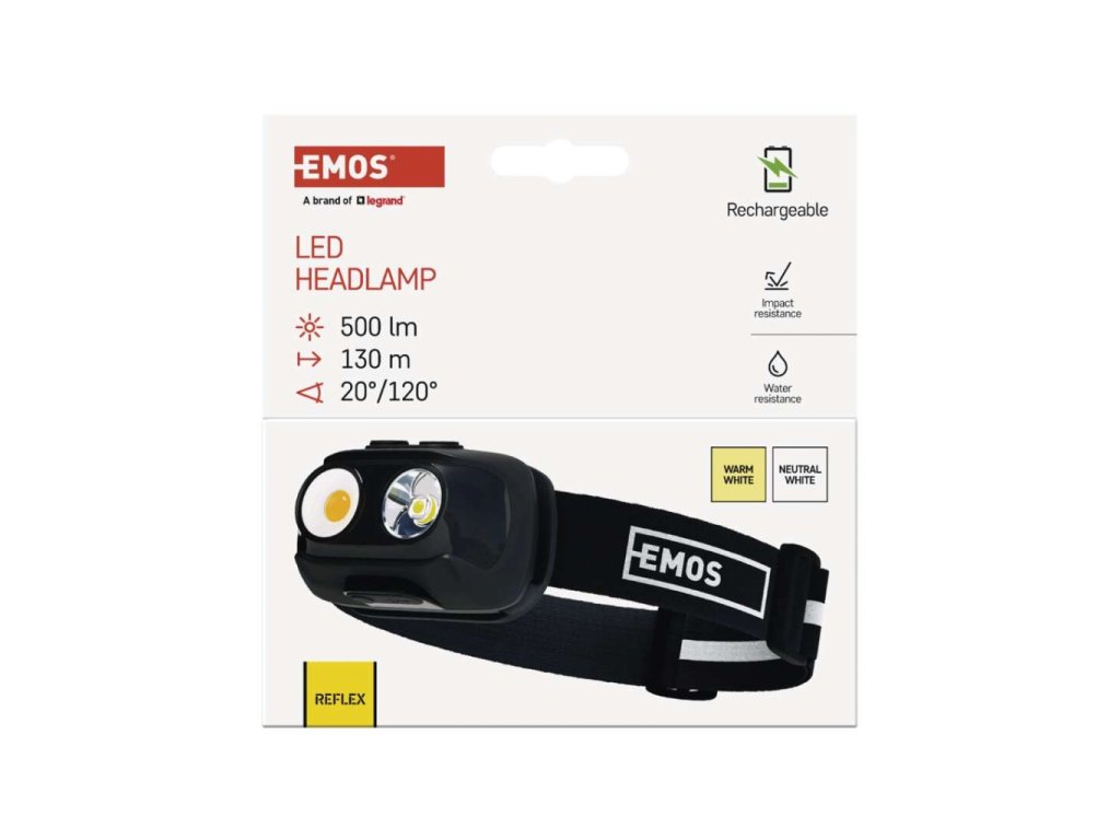 COB LED nabíjecí čelovka P3542, 500lm, 130m, Li-pol 1200 mAh