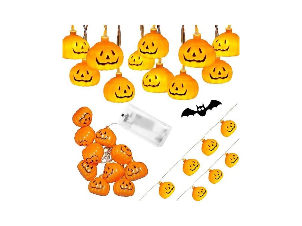 Dýňová světla 10ks, 200cmTECHNICKÉ SPECIFIKACE:<BR/>Materiál: plast<BR/>Dodá vašemu interiéru jedinečnou atmosféru<BR/>Pro halloween<BR/>K dekoraci<BR/>Počet dýní na girlandě: Dýně jsou vyrobeny z dýní, které jsou součástí girlandy: Počet dýní v balení: 10 kusů<BR/>Pevné světlo<BR/>Napájení: 2 x AA (není součástí balení)<BR/>Použití: Pro vnitřní i venkovní výzdobu (pod stříškou).<BR/>Barva: oranžová<BR/><BR/>ROZMĚRY:<BR/>Výška dýně: Rozměry: 4,5 cm<BR/>Průměrdýně: 5 cm<BR/>Celková délka provázku se světly: 200cm<BR/>Vzdálenost mezi dýněmi: ~19cm