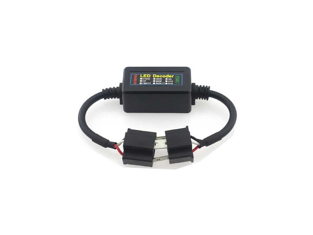 Eliminátor chybových hlášení H4 /Dekodér chyb/Po zapojení mezi konektor pro žárovku a patici LED žárovky zamezí chybové hlášce o poruše žárovky. Určeno pro použití ve spojení s neoriginálními LED žárovkami v automobilech.