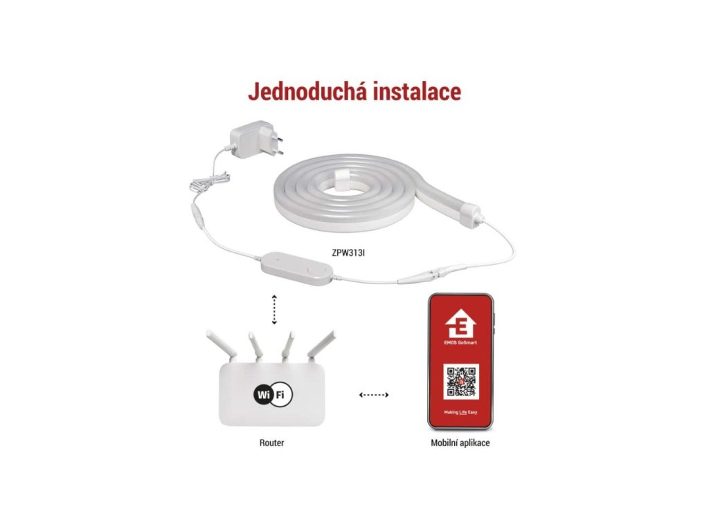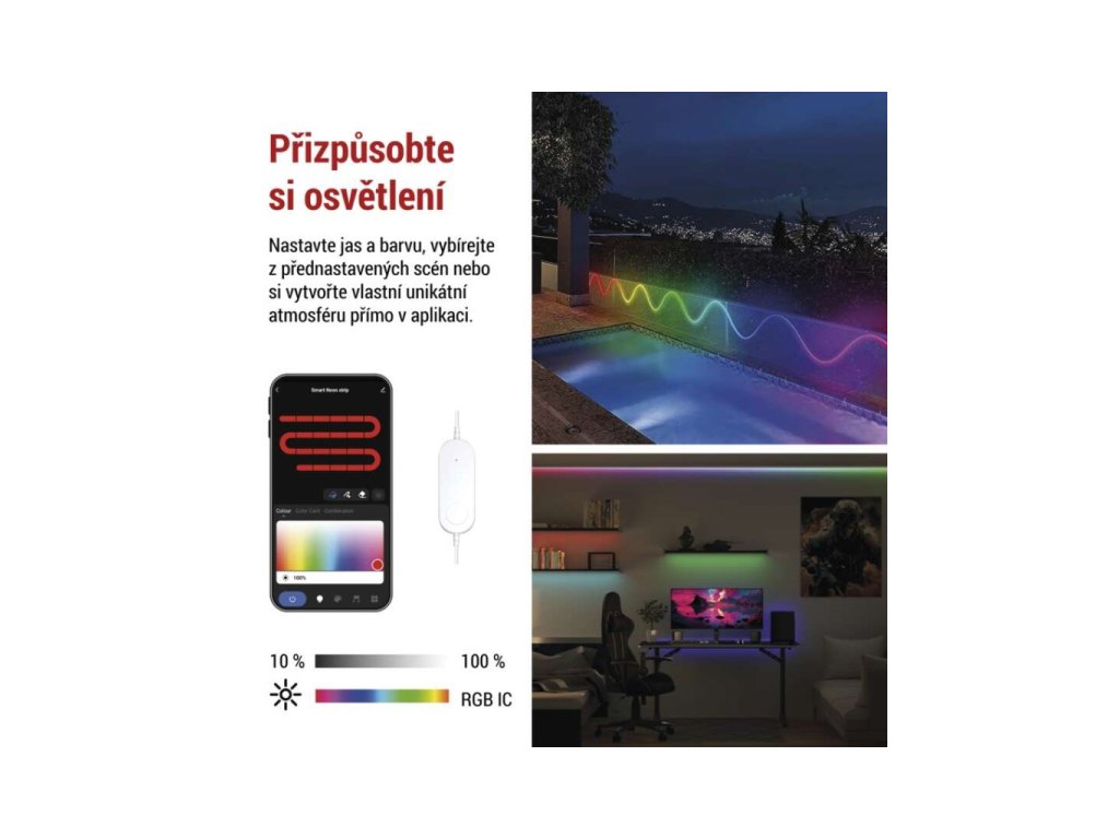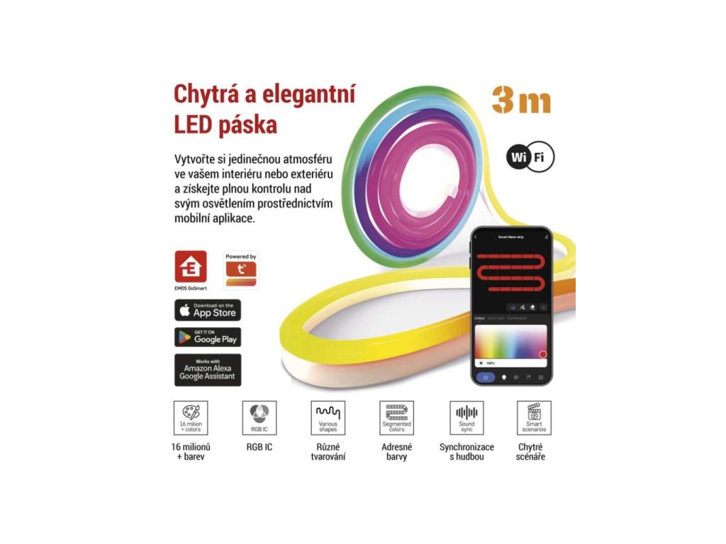 GoSmart ohebný LED pásek NEON bílý, 3 m, 24 W, RGB, stmívatelný, WiFi