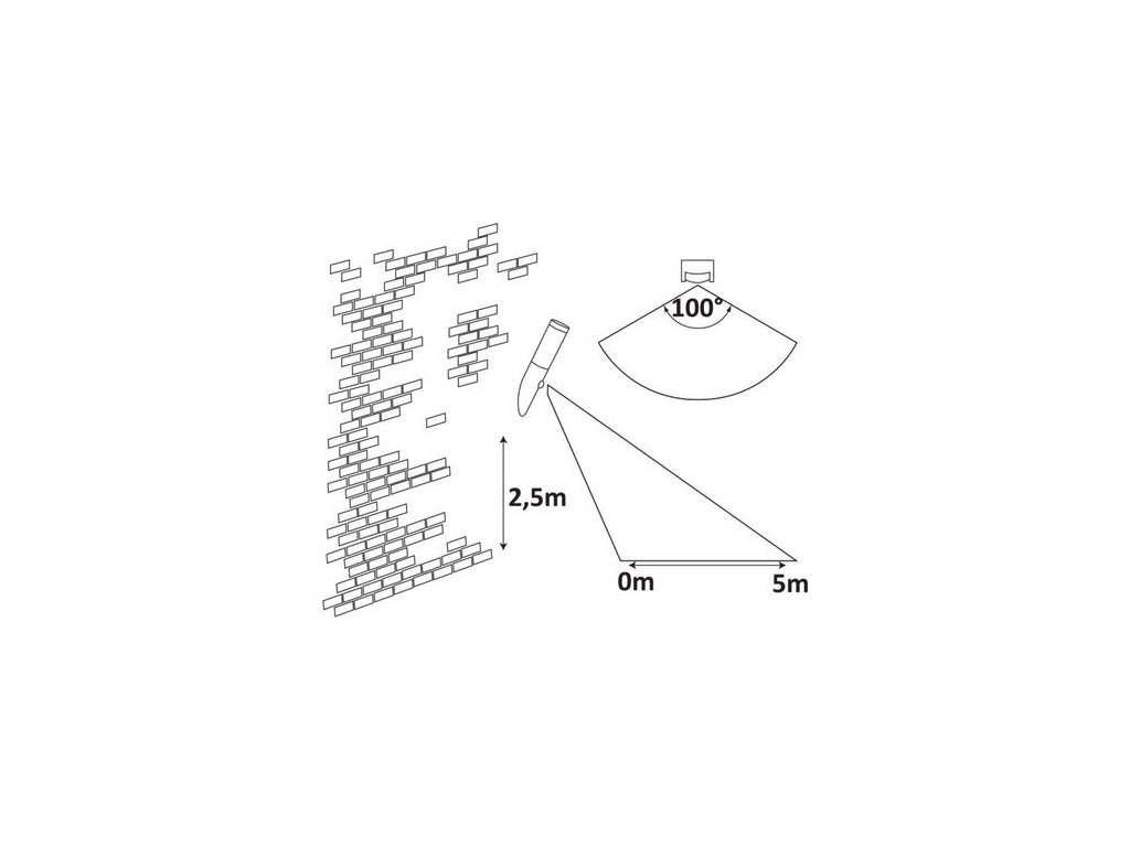 - Zabudovaný pohybový sensor, detekce senzoru 0-5m, 100°