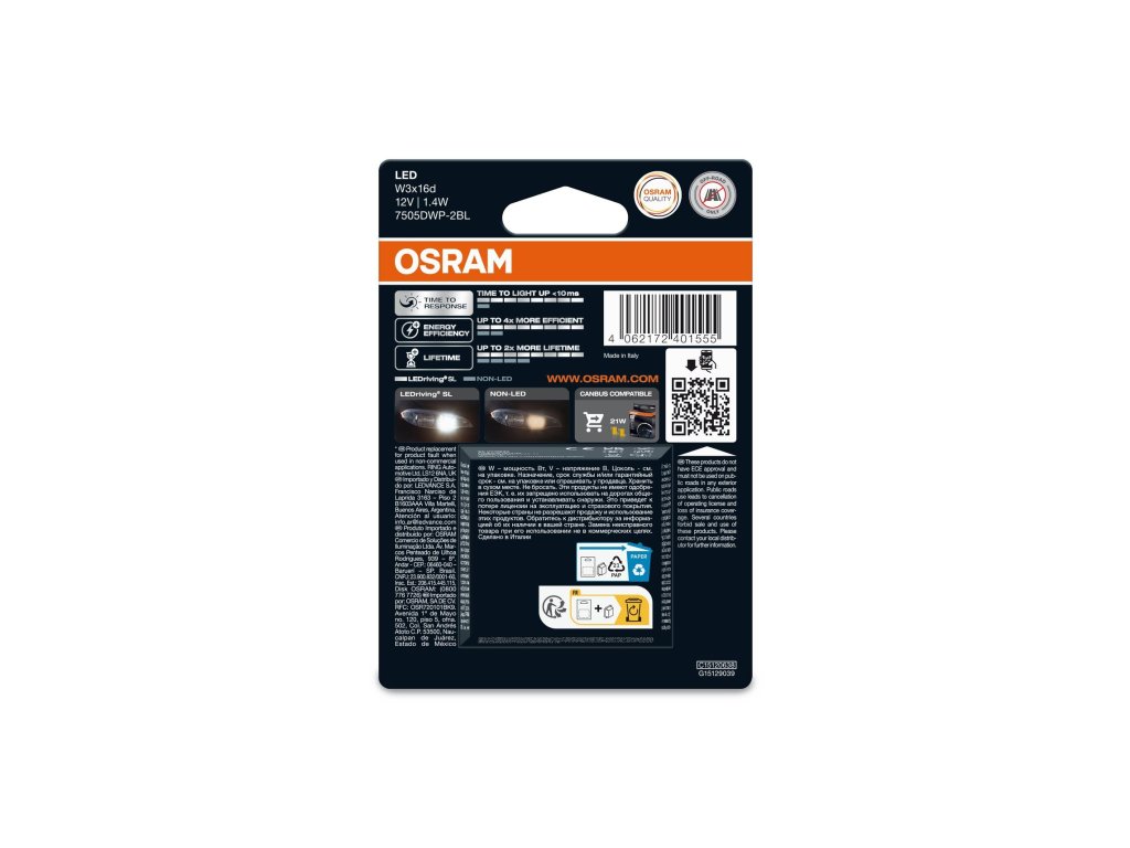 LED 12V W21W W3x16d OSRAM blistr 2ks