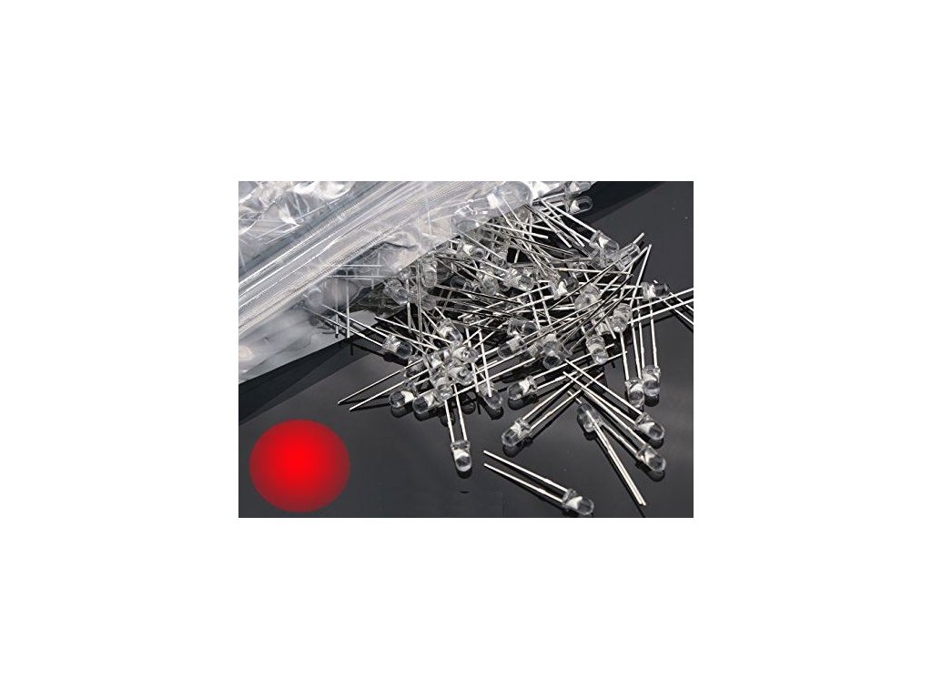 LED 3mm červená čirá, balení 100ksSvítivost: 1000-1500mcd<BR/>Napájecí napětí: 2,0-2,2V<BR/>Proud: 20mA<BR/>Vlnová délka: 620-625