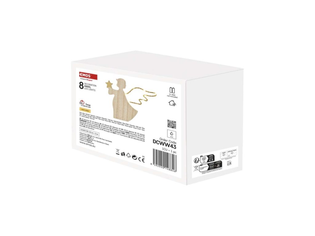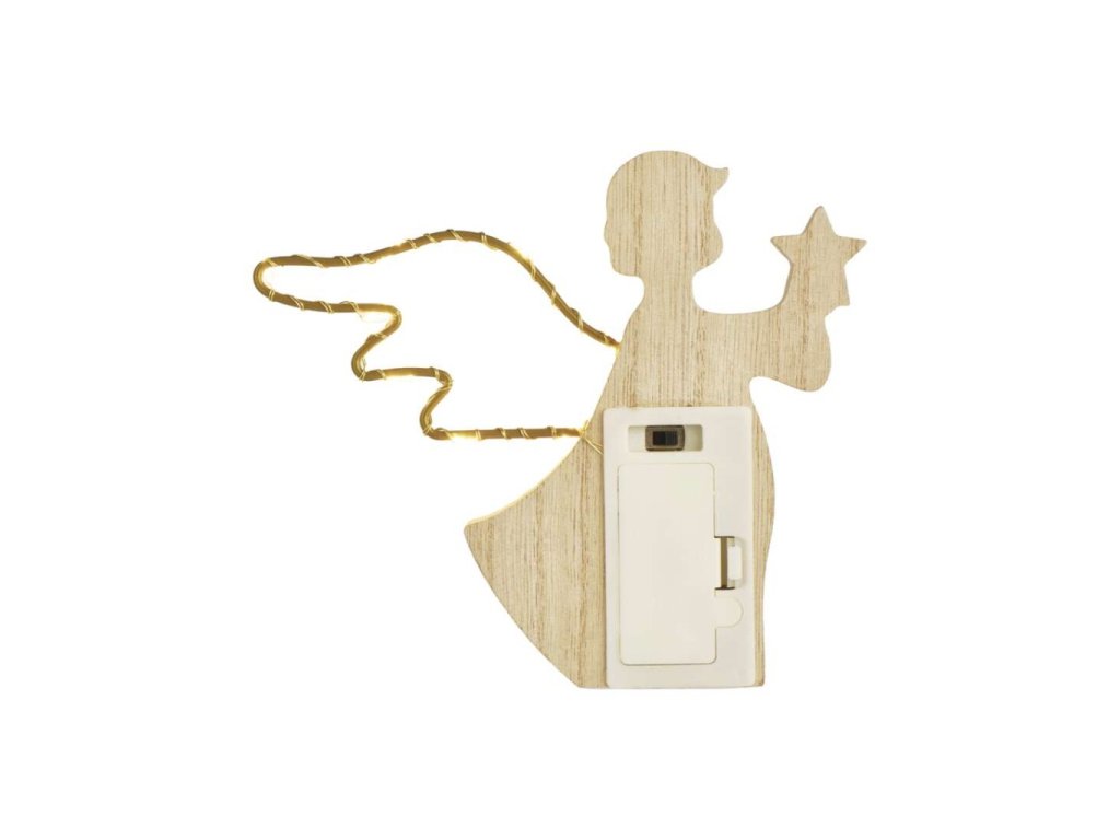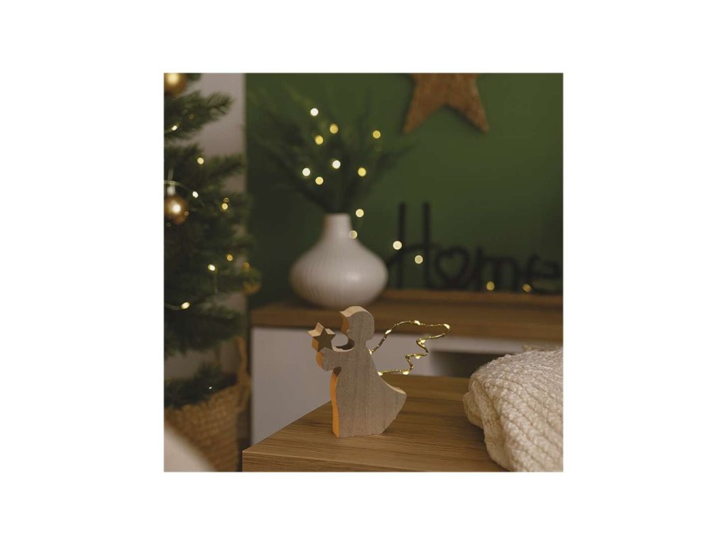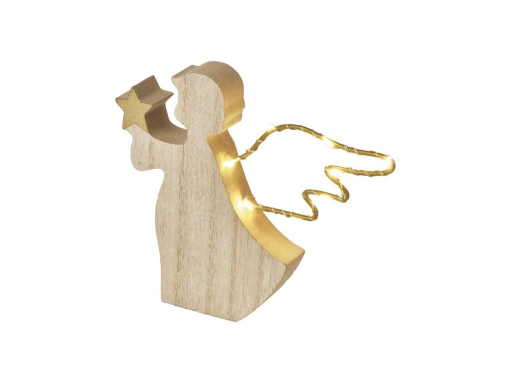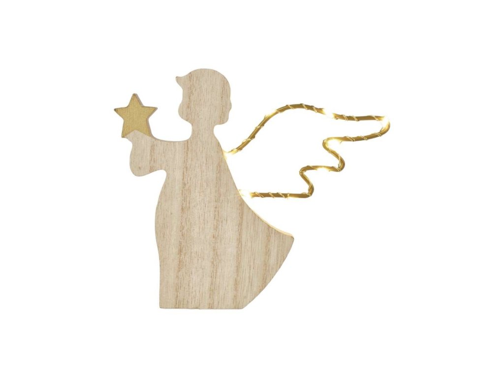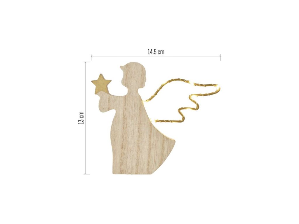 LED dekorace dřevěná – anděl, 13 cm, 2x AAA, vnitřní, teplá bílá, časovač