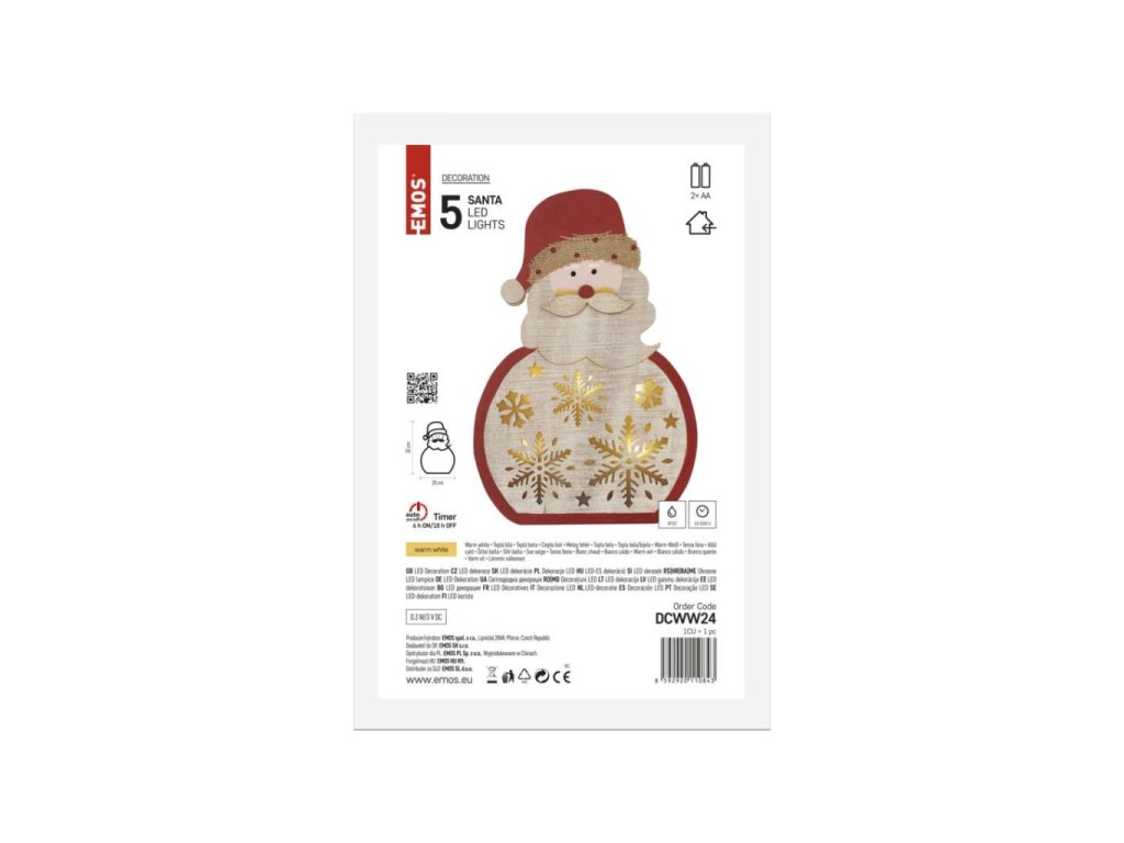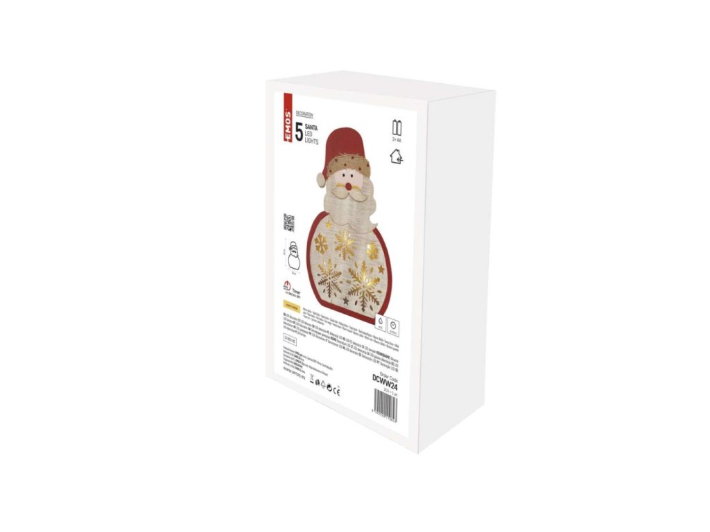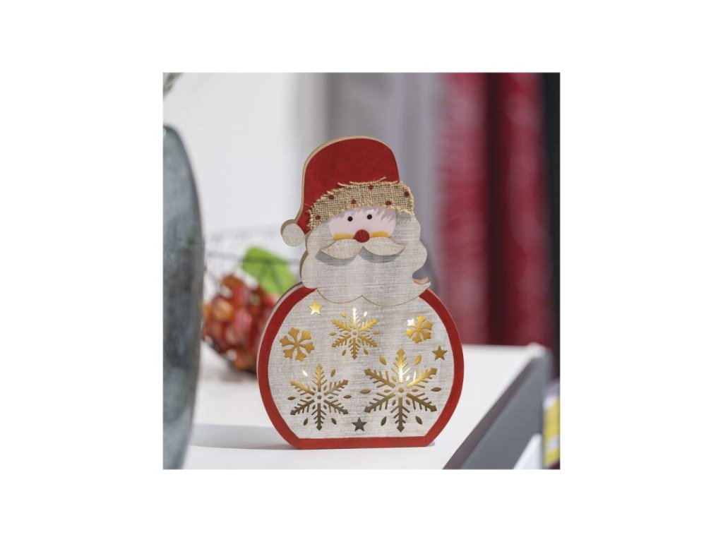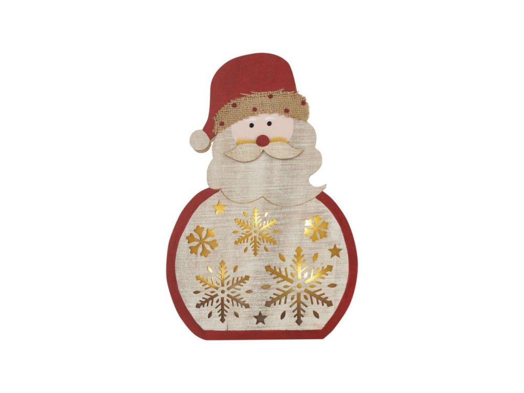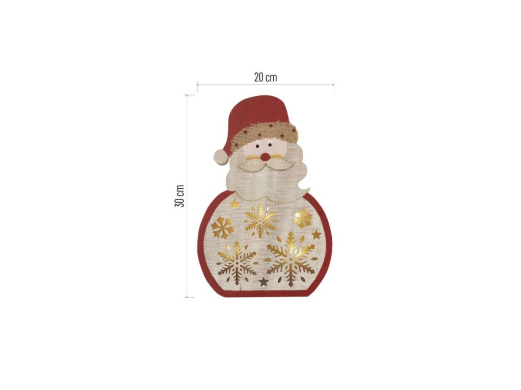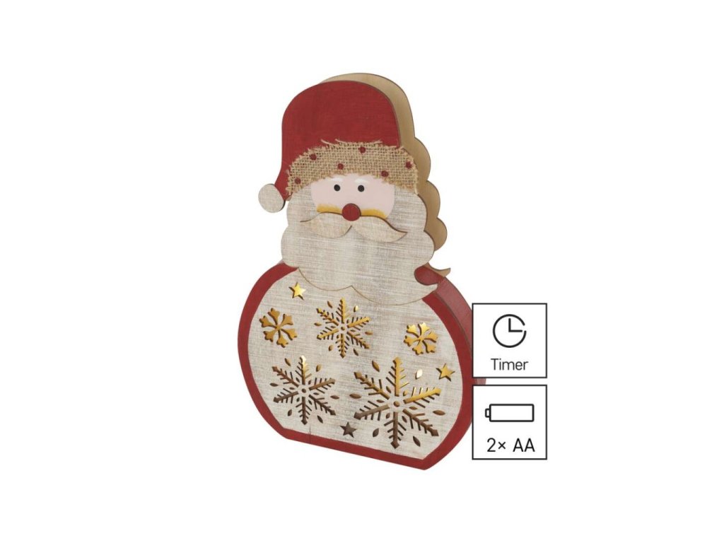 LED dekorace dřevěná – Santa, 30 cm, 2x AAA, vnitřní, teplá bílá, časovač