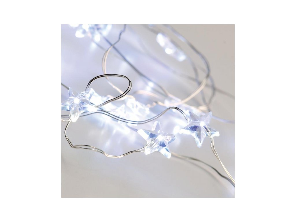 LED dekorační girlanda - bílé hvězdičky, studená bílá barva, 200 cm, IP20, 2x baterie AA