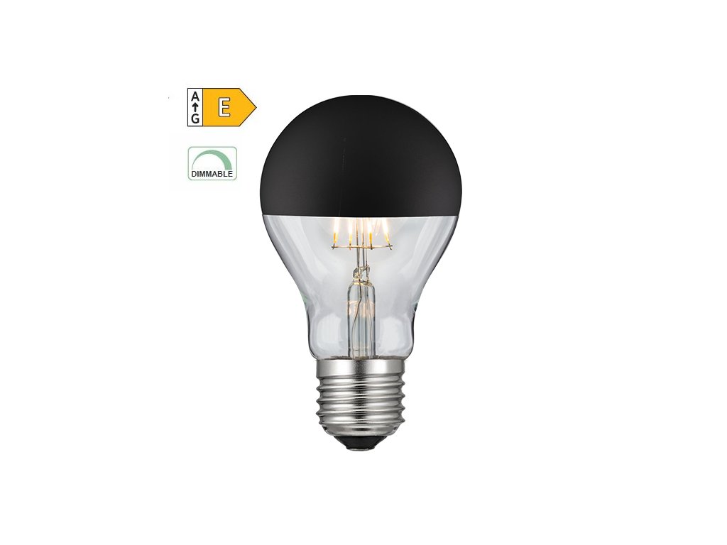LED Filament zrcadlová žárovka A60 8W/230V/E27/2700K/900Lm/180°/DIM, černý vrchlík