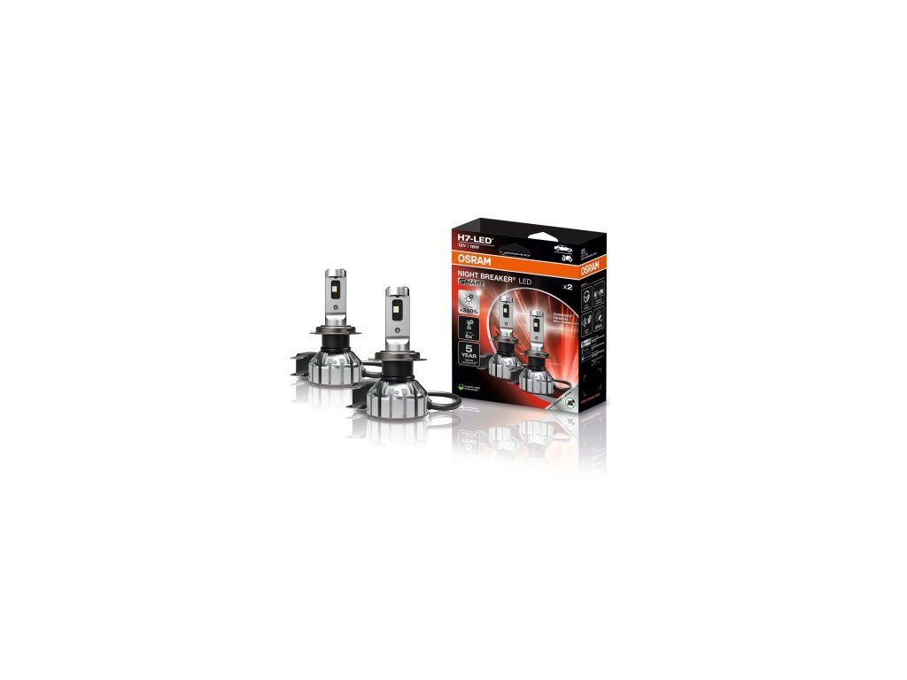 Mimořádně jasný, inovativně kompaktní, snadno použitelný, kompatabilní, mimořádně odolný a samozřejmě legální na veřejných komunikacích1). To je nový NIGHT BREAKER® LED SMART od společnosti OSRAM. Vyzkoušejte další milník společnosti OSRAM a objevte zcela nový rozměr ve světě legálních LED žárovek pro dodatečnou instalaci. NIGHT BREAKER® LED SMART. S novým street-legal NIGHT BREAKER® LED SMART, který se vyznačuje inovativním kompaktním designem, propracovanou konstrukcí a výjimečným jasem je nyní možné přejít z tradičních halogenových žárovek na pokročilou technologii OSRAM LED u ještě většího počtu vozidel. Pro osobní automobily, obytné vozy, karavany, dodávky, speciální vozidla, užitková vozidla, lehké nákladní automobily, motocykly a vše mezi tím. Náhradní žárovky NIGHT BREAKER® LED SMART jsou vhodné jako náhrada běžných halogenových žárovek. Nyní můžete vylepšit funkci dálkových a potkávacích světel svého vozidla o nejmodernější LED technologii. Nabízejí moderní a jasné bílé světlo s barevnou teplotou až 6000 kelvinů a zaujmou až o 330 % vyšším jasem, přičemž oslnění ostatních účastníků silničního provozu klesne až o 50 % pod přípustné maximální hodnoty. Ve srovnání se standardními žárovkami, jako jsou halogenové žárovky, spotřebují tyto LED retrofitní žárovky až o 60 % méně energie a přesvědčí díky LED technologii i speciálně vyvinuté konstrukci odolné proti vibracím, která má až 6krát delší životnost. Nyní můžete nahradit běžné žárovky ve vozidle revolučními LED legálními retrofitními žárovkami OSRAM NIGHT BREAKER® a zažít perfektně osvětlenou cestu.Pro legální výměnu LED žárovek za halogenové autožárovky je nutné si prostudovat kroky před nákupem a po nákupu NB LED H7, (hlavně zjistit, zda je Váš vůz v seznamu schválených vozů) najdete zde Postup: 1. Provést instalaci obou LED žárovek, případně použít OSRAM příslušenství. 2. Do motorového prostoru nebo na zadní část světlometů nalepit samolepku přiloženou v krabičce. 3. Nechat seřídit světlomety. Žádné změny v technickém průkaze nejsou nutné. K instalaci je u některých vozů potřeba použít příslušenství (adaptéry, canbusy, krytky – viz „Seznam kompatibility“) Legální použití OSRAM NB LED H7 je podmíněno instalací se schváleným OSRAM příslušenstvím.