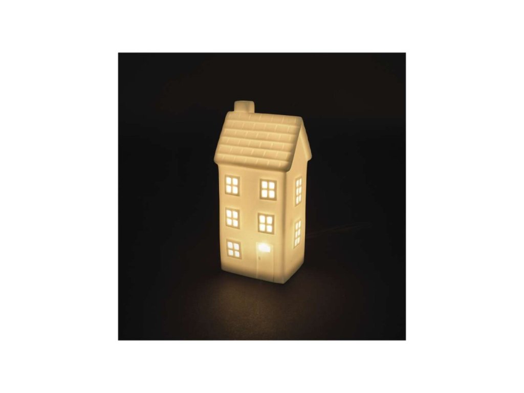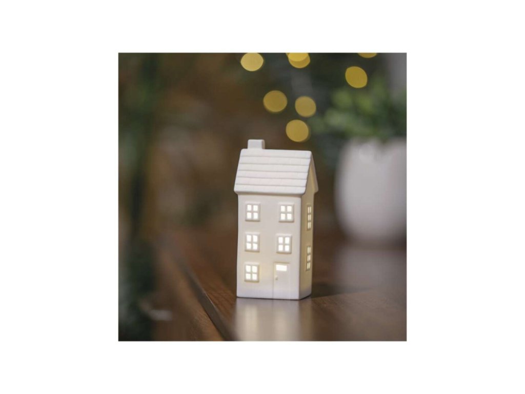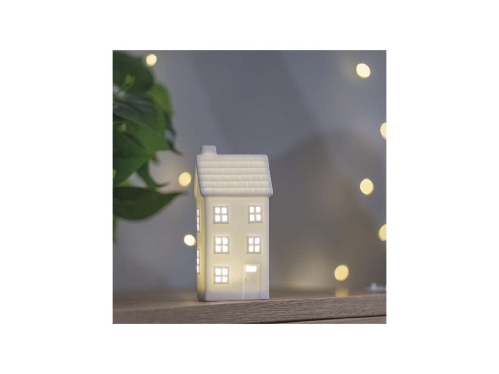 LED keramický domeček, 16 cm, 1x CR2032, vnitřní, teplá bílá, časovač
