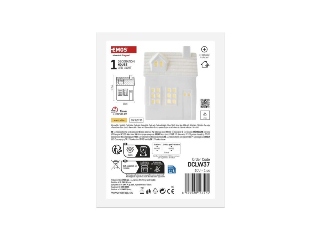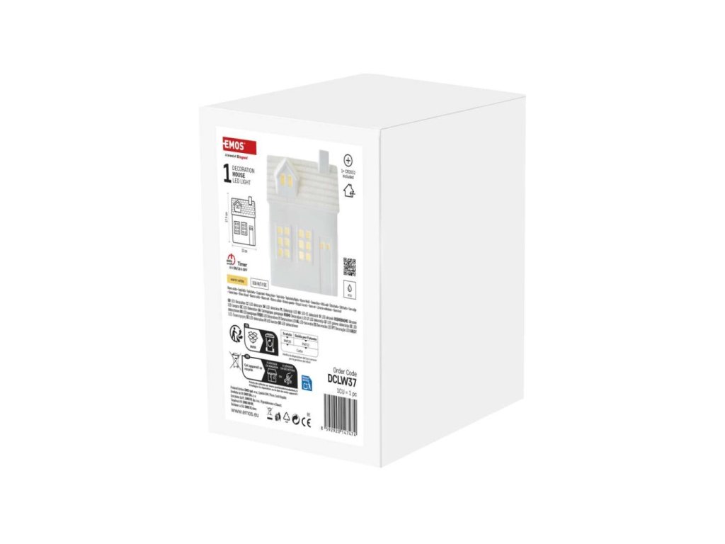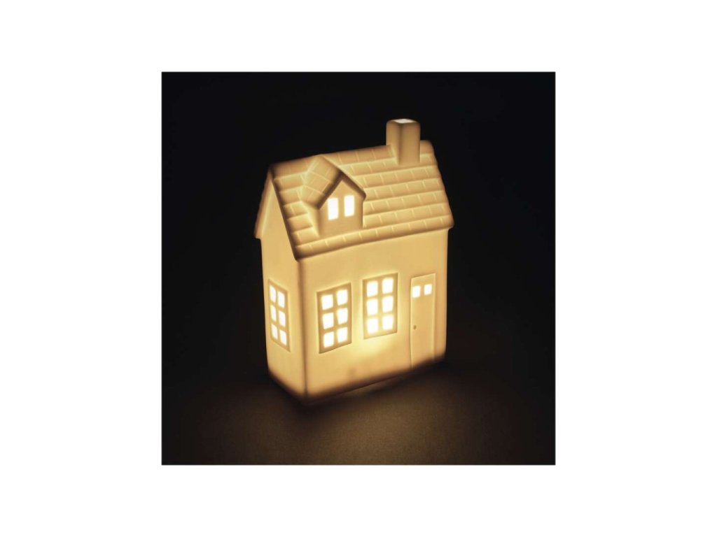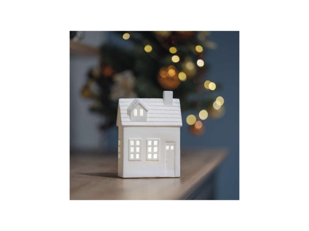 LED keramický domeček, 18 cm, 1x CR2032, vnitřní, teplá bílá, časovač