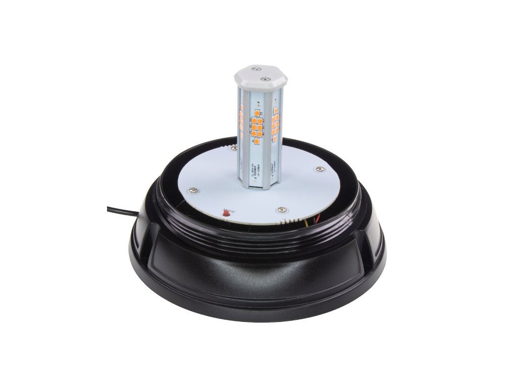 Výstražný červený maják s LED technologií a s možností zábleskového nebo otočného provozu. Určen pro uchycení pomocí magnetu.Technické parametry: • homologace dle: ECE R10 • světelný zdroj: 48x LED 1W • 7 režimů výstražného blikání včetne otočného režimu • uchycení na magnet • napájecí napětí: 12 V