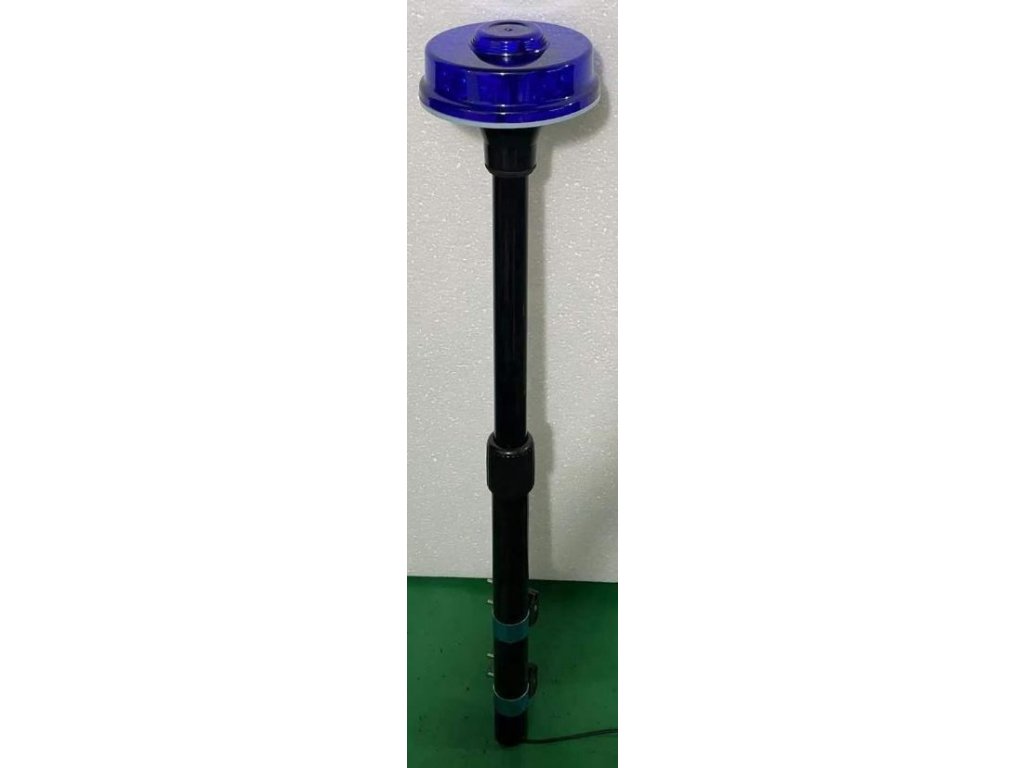 ModrýLED maják s výrazným výstražným efektem, speciální optika (čočky) s teleskopickou tyčí, určen pro montáž na motocykl.Technické parametry: • světelný zdroj: 6 výkonných LED 1W • napájecí napětí 12V • pracovní teplota -40