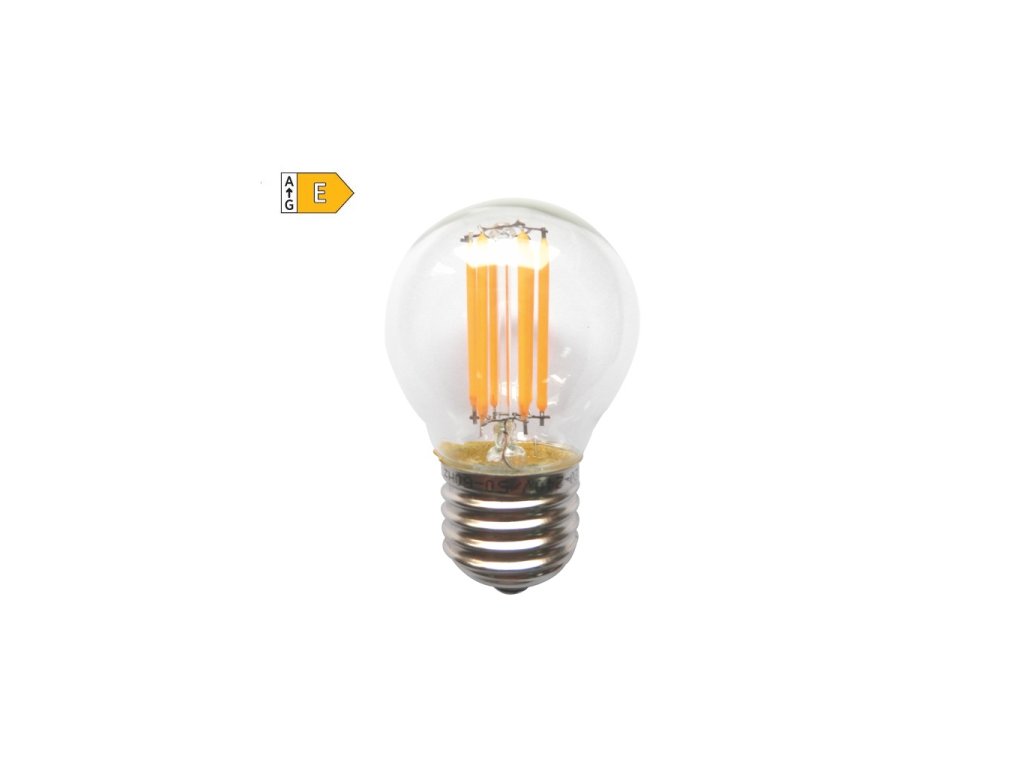 LED Retro Mini Globe dekorativní žárovka 6W čirá P45 ve tvaru koule s LED Filament čipy, která nahrazuje 60W žárovku s paticí E27.