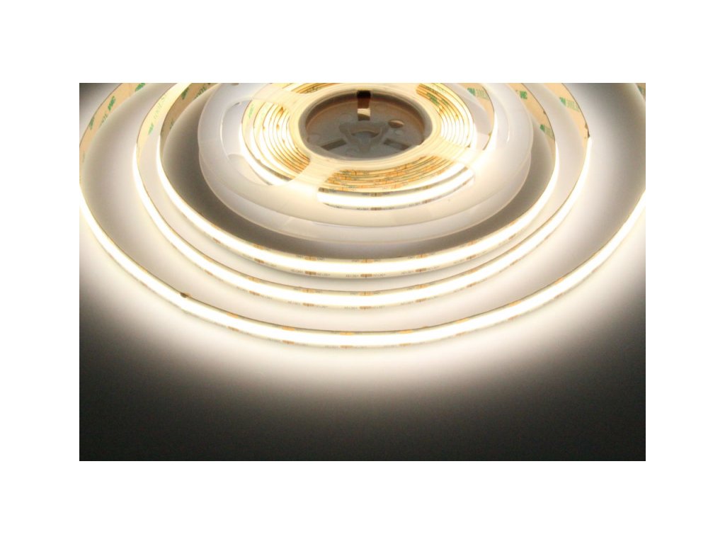 ↵ Řada LED pásku COB je speciální řada LED pásků, kde jsou LED čipy zalité vrstvou luminoforu, které způsobuje stejnoměrné svícení LED pásku bez viditelnosti jednotlivých diod. LED pásek COB tedy můžete použít například i u instalací, kde není možné použít dostatečné vhodný profil s mléčným krytem, který standartně světlo z LED pásku může sjednotit do jedné linie. Zalití luminoforem také zvětšuje úhel svitu COB LED pásků na 180°.COB LED pásky je možné využít jako osvětlení pro dekoratovní a reklamní účely, v šatnách, na schodištích apod.