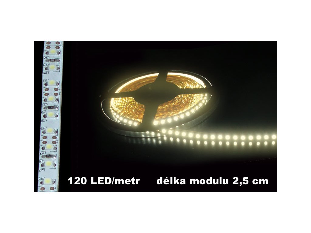 LED Pásek 12V teple bílý IP65 120LED bílé pozadí voděodolný 580lm 5m