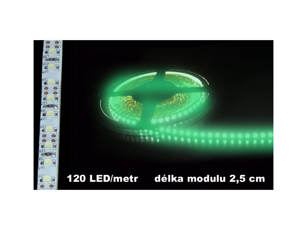 LED Pásek 12V zelený IP65 120LED bílé pozadí voděodolný 390lm 5m