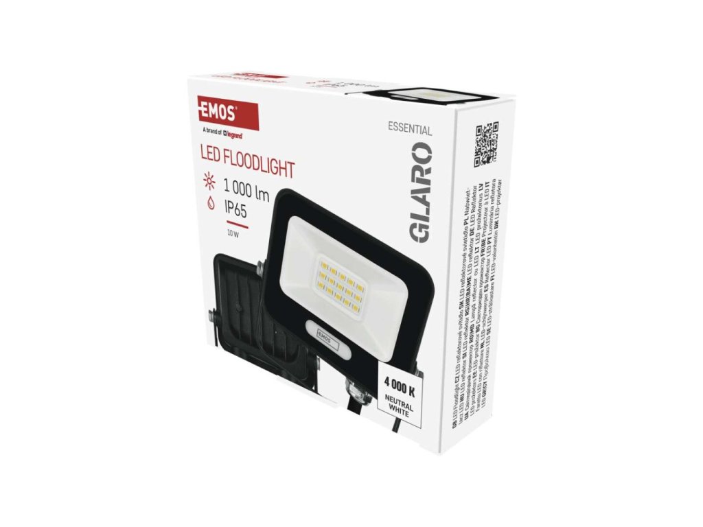 LED reflektor GLARO 10W, černý, IP65, 1000 lm, neutrální bílá