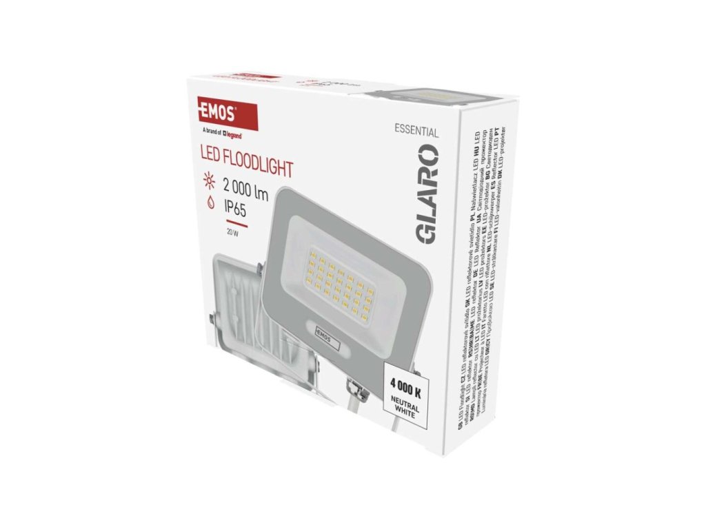 LED reflektor GLARO 20W, bílý, IP65, 2000 lm, neutrální bílá