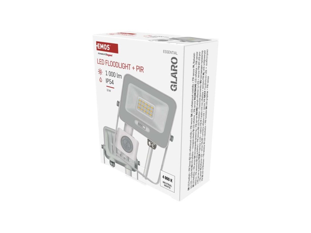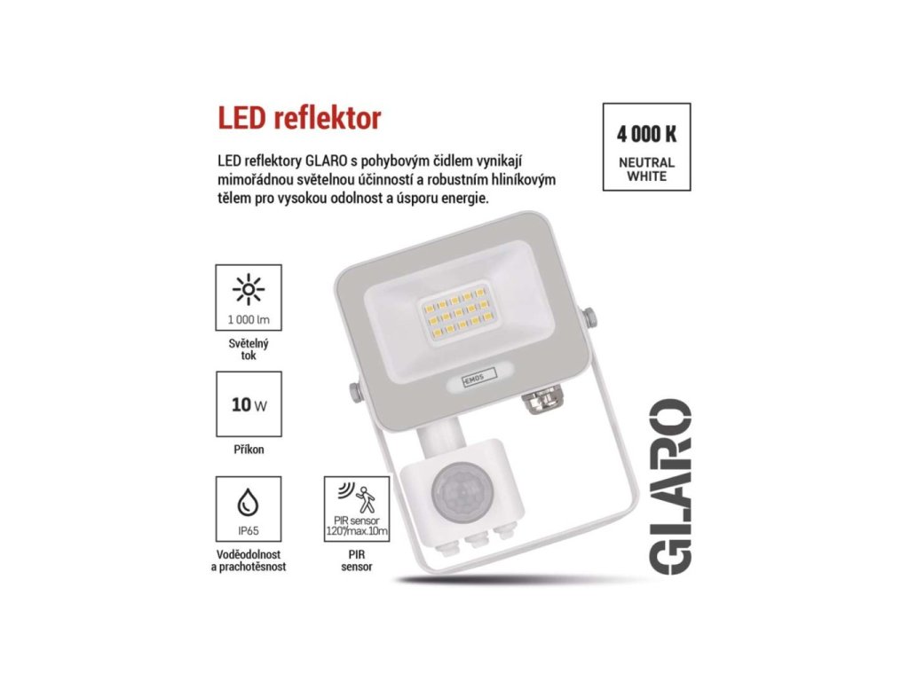 LED reflektor GLARO s pohybovým čidlem, 10 W, bílý, IP54, 1000 lm, neutrální bílá