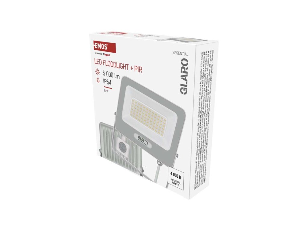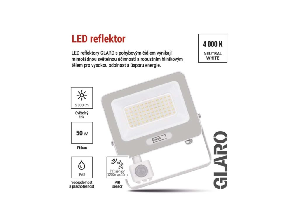LED reflektor GLARO s pohybovým čidlem, 50 W, bílý, IP54, 5000 lm, neutrální bílá