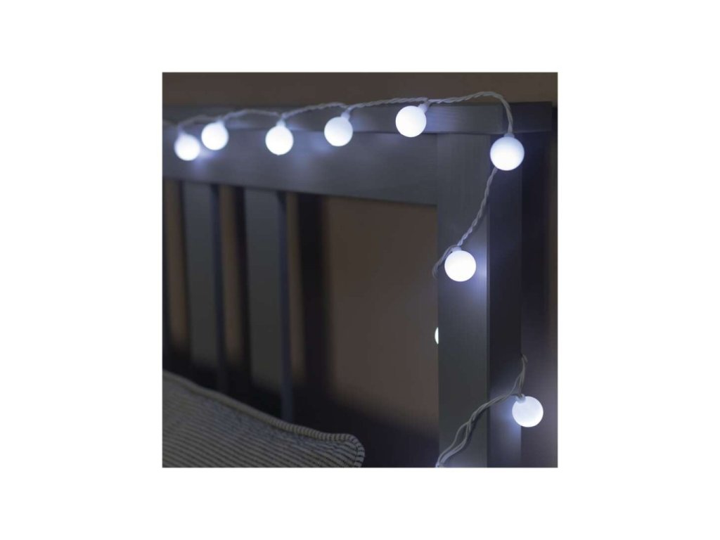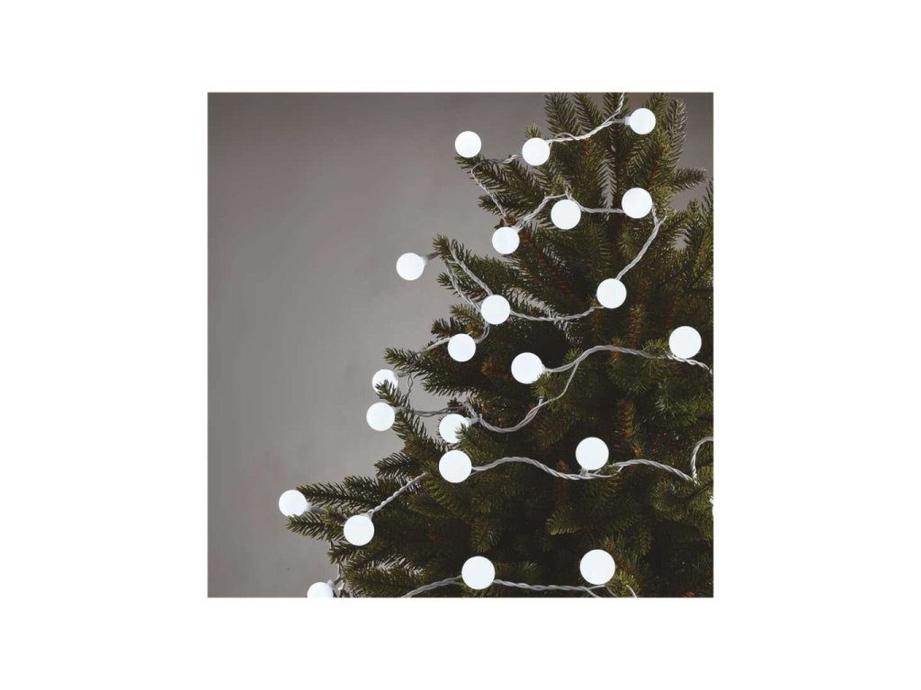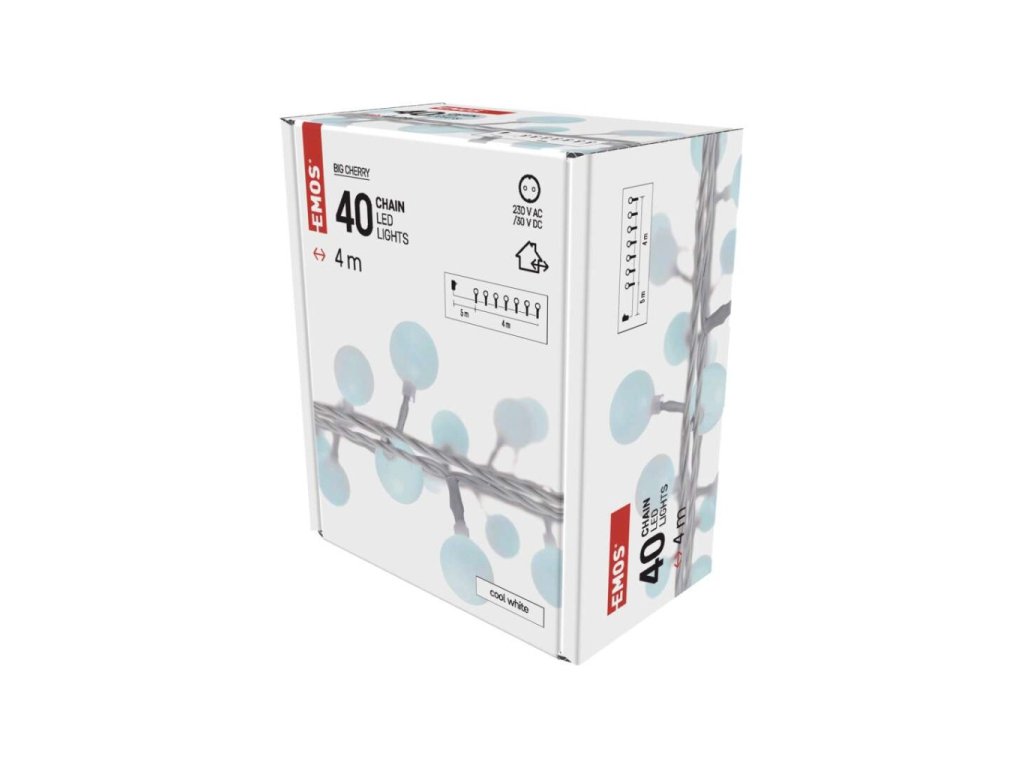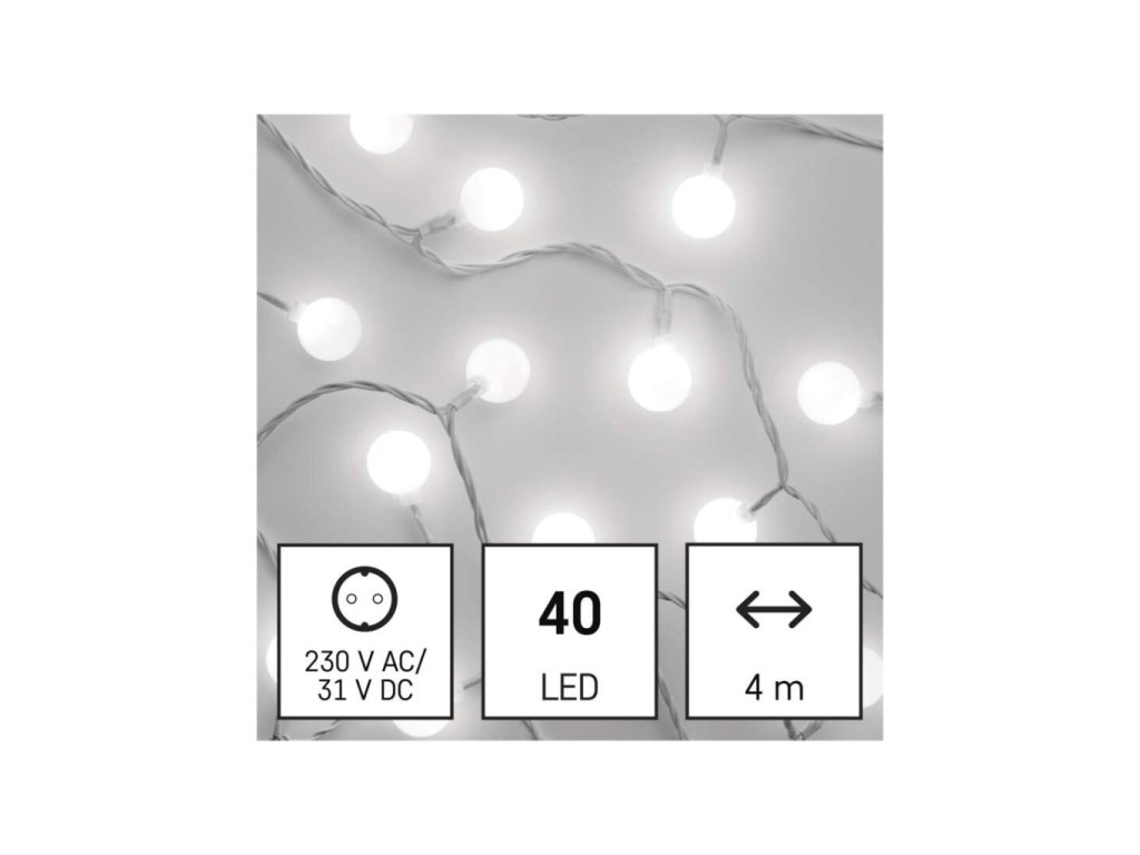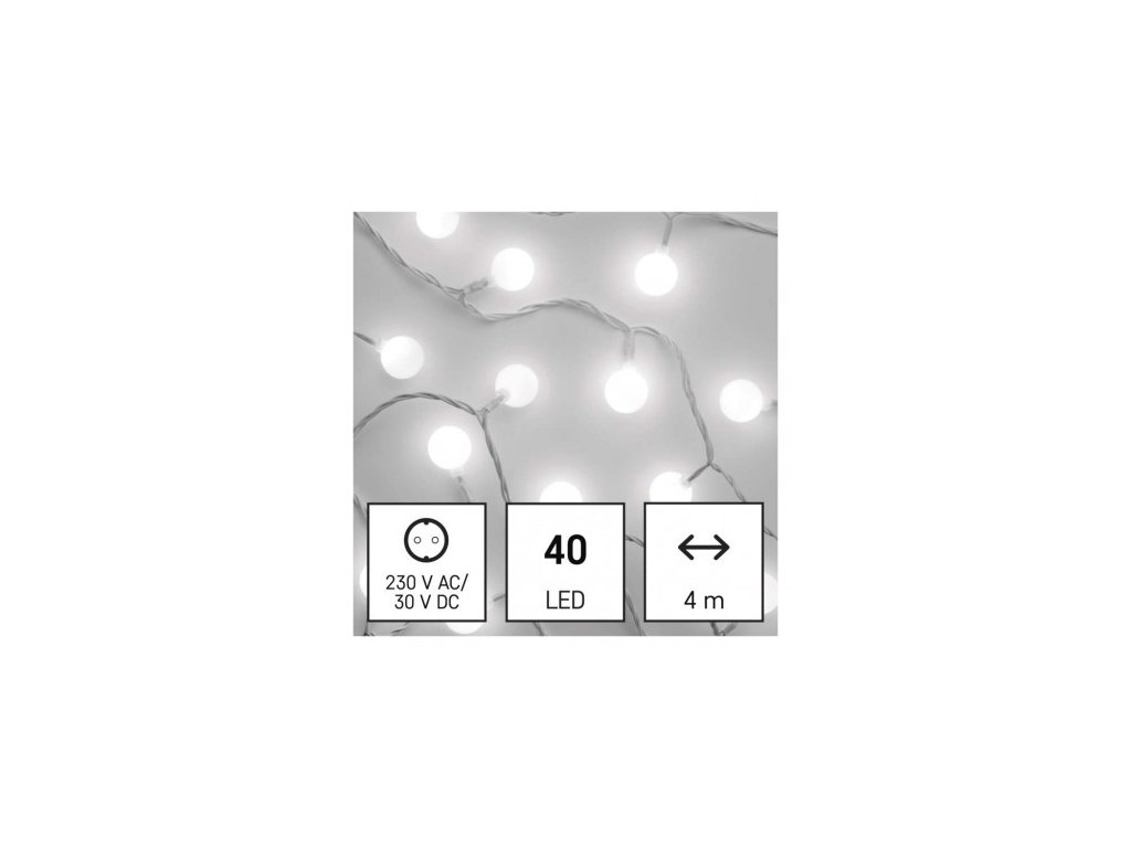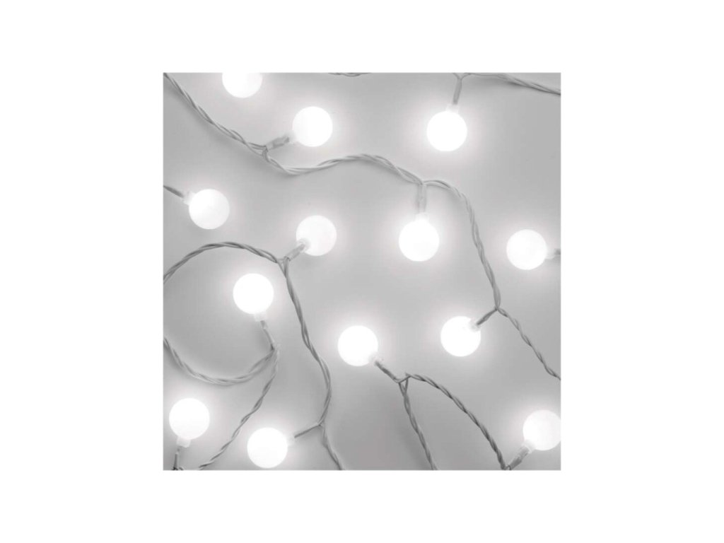 LED světelný cherry řetěz – kuličky 2,5 cm, 4 m, venkovní i vnitřní, studená bílá, časovač