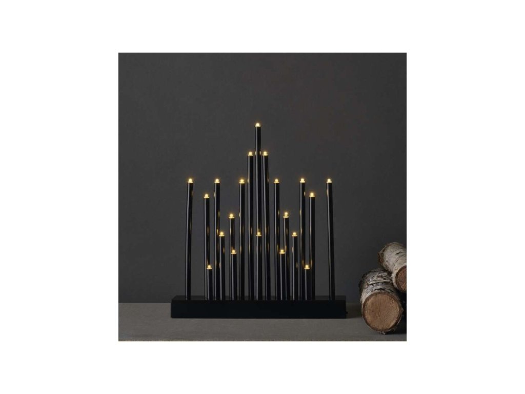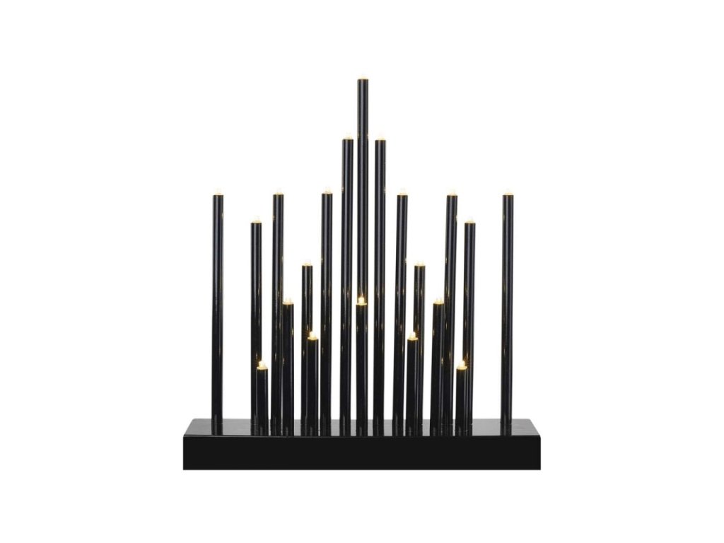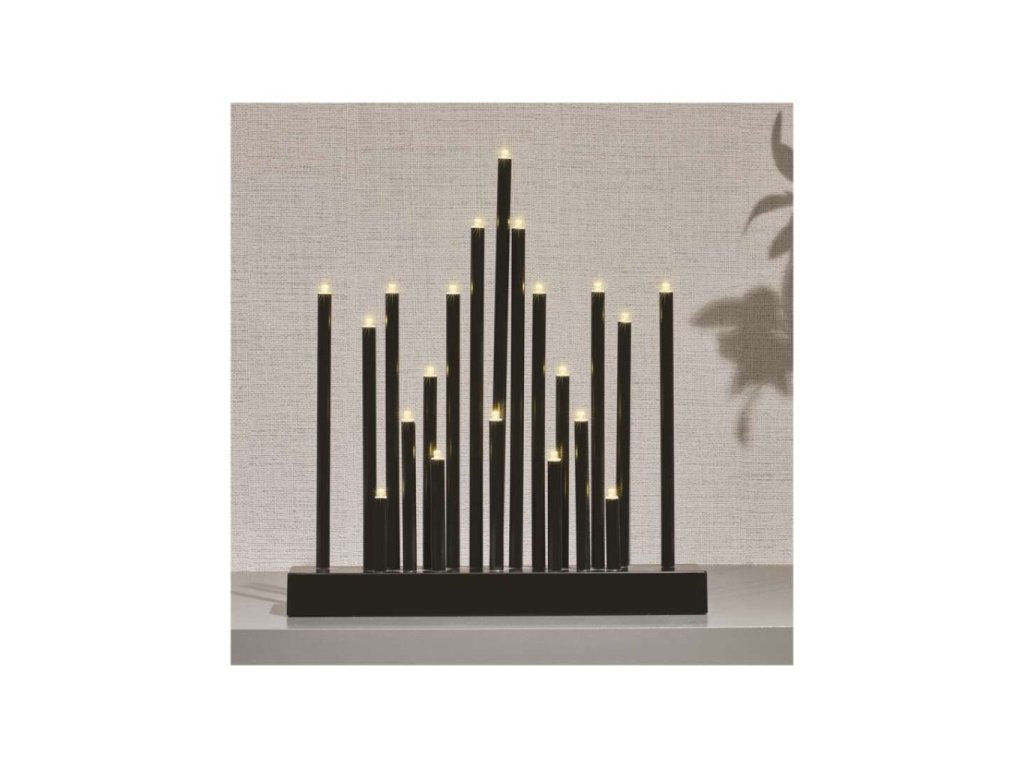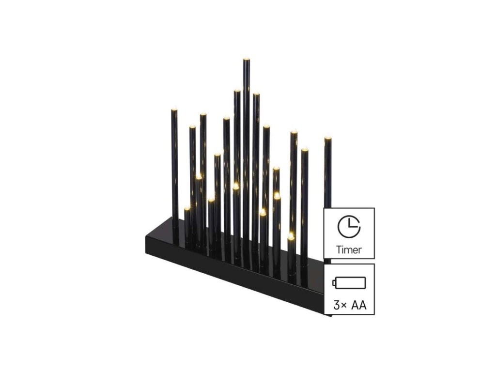 LED svícen černý, 27,5 cm, 3x AA, vnitřní, teplá bílá, časovač