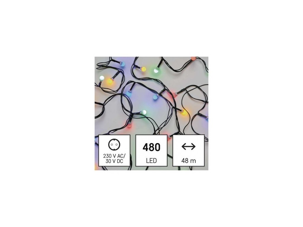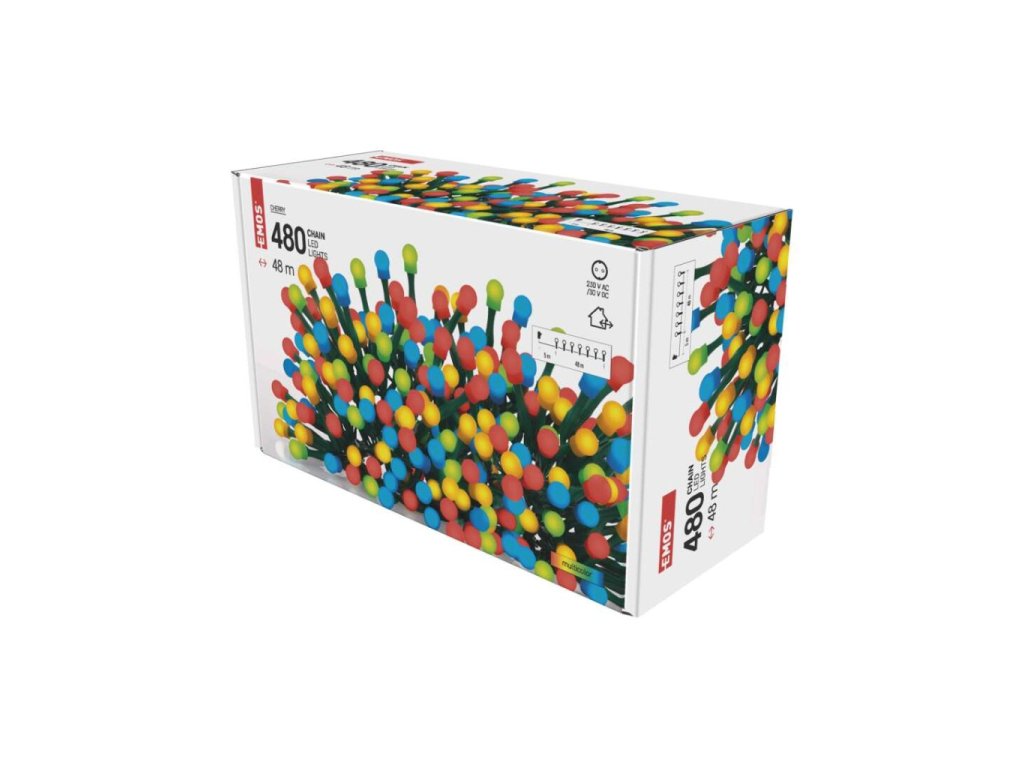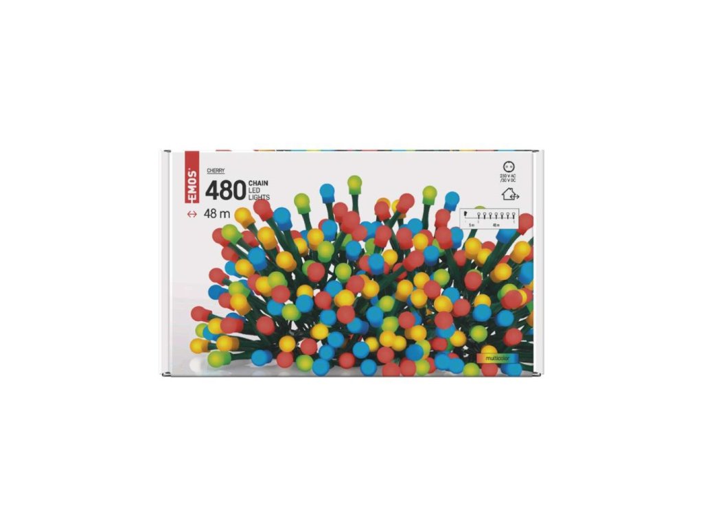 LED vánoční cherry řetěz – kuličky, 48 m, venkovní i vnitřní, multicolor, časovač