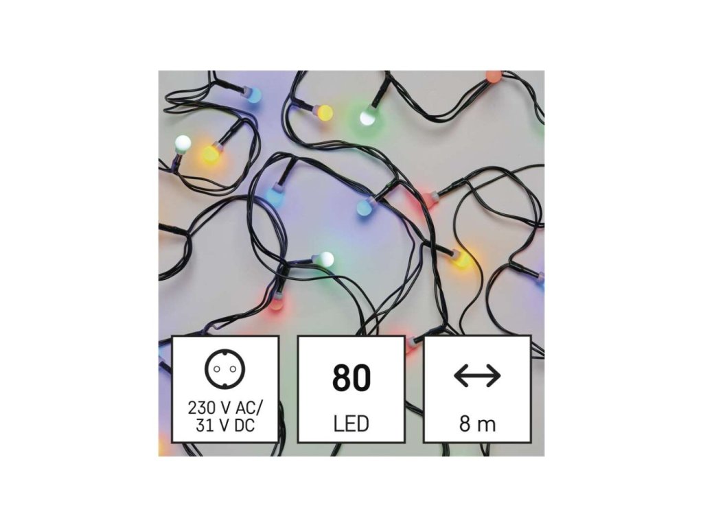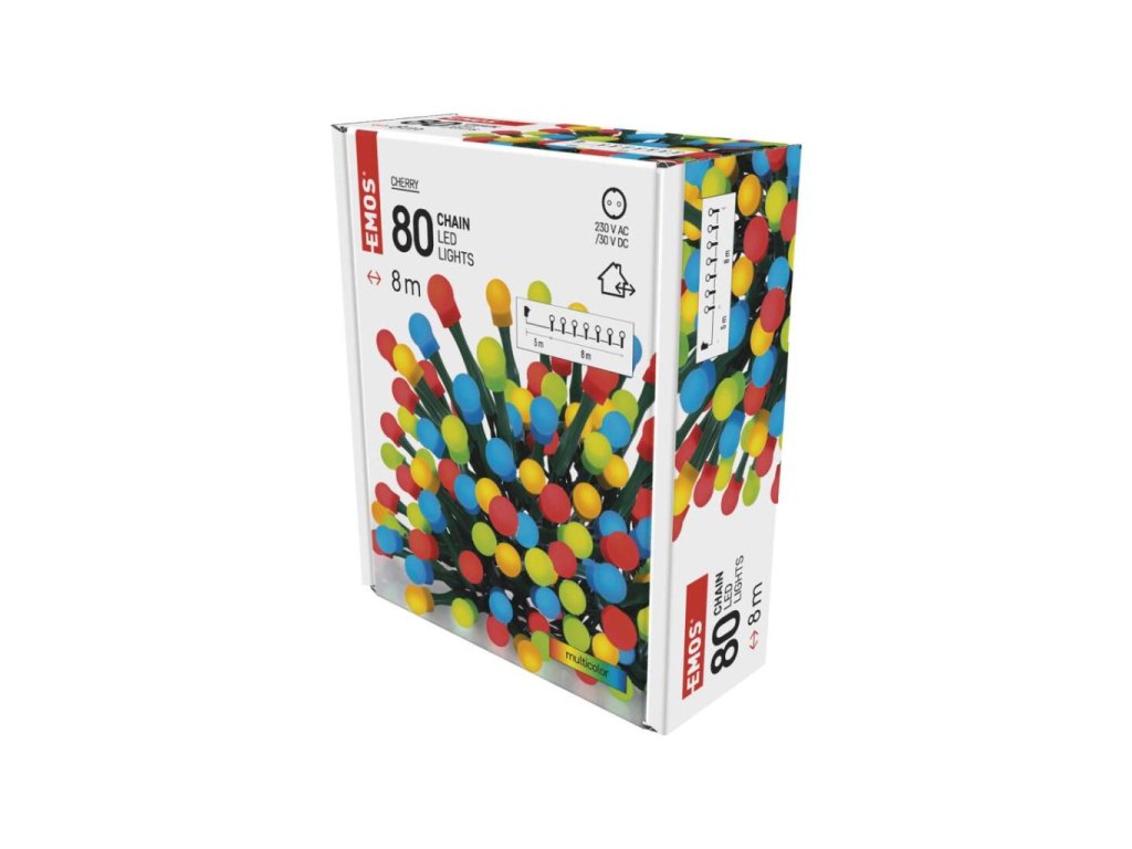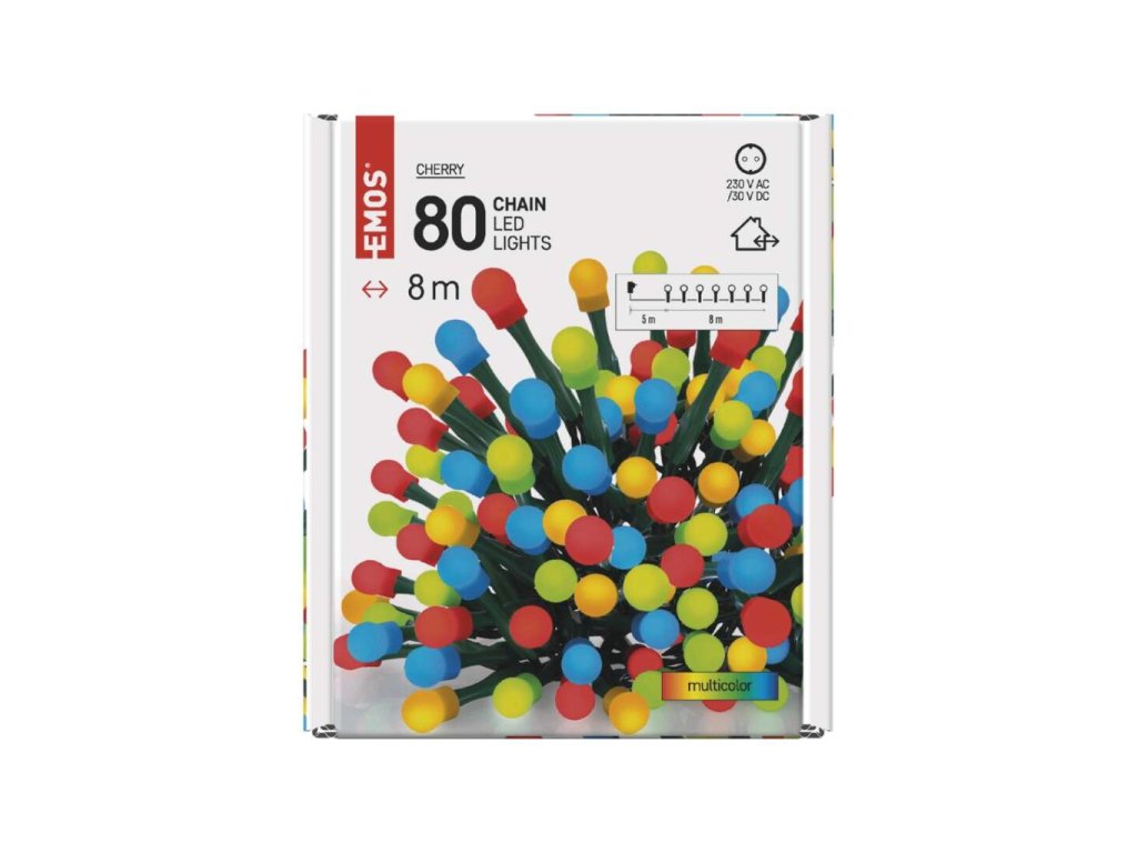 LED vánoční cherry řetěz – kuličky, 8 m, venkovní i vnitřní, multicolor, časovač