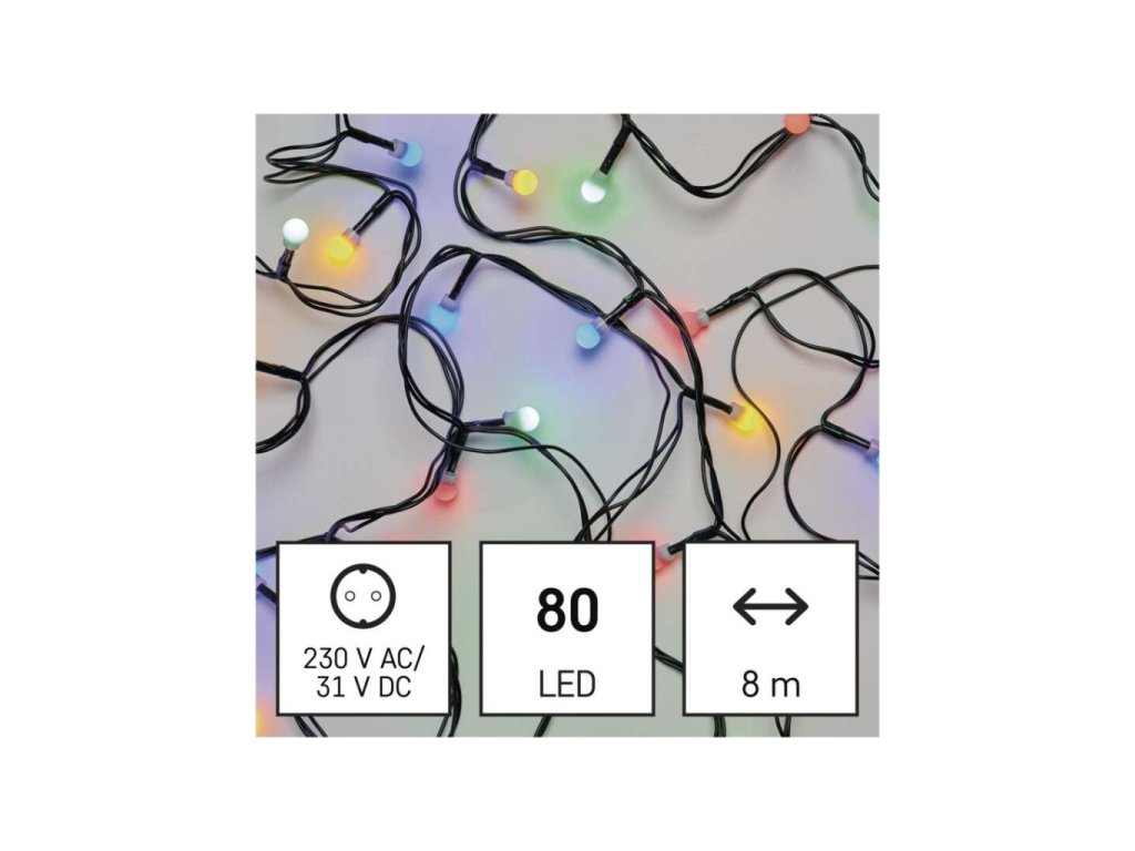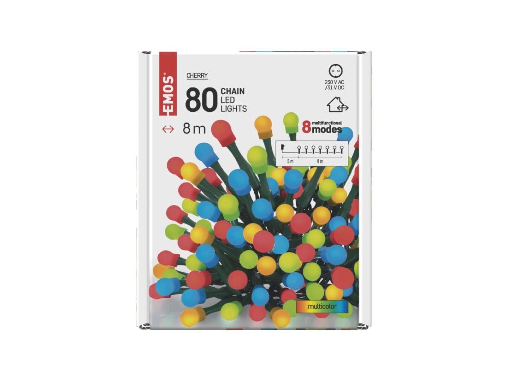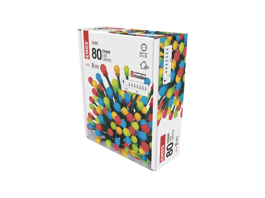 LED vánoční cherry řetěz – kuličky, 8 m, venkovní i vnitřní, multicolor, programy