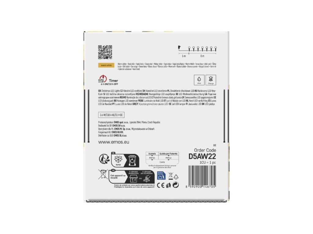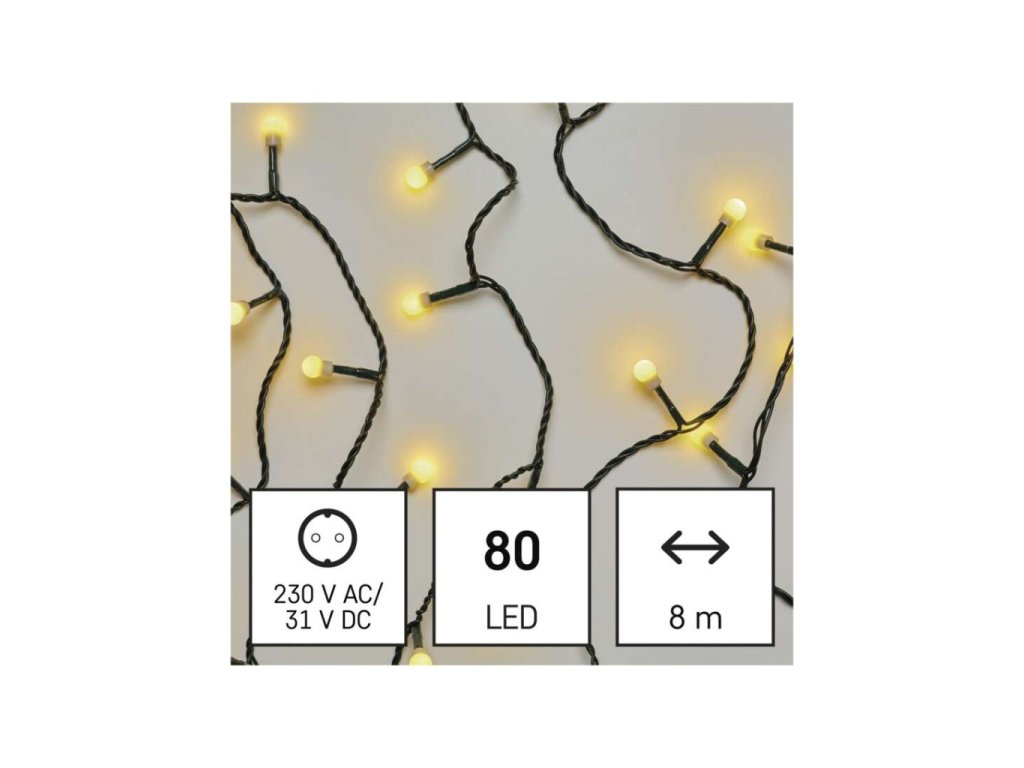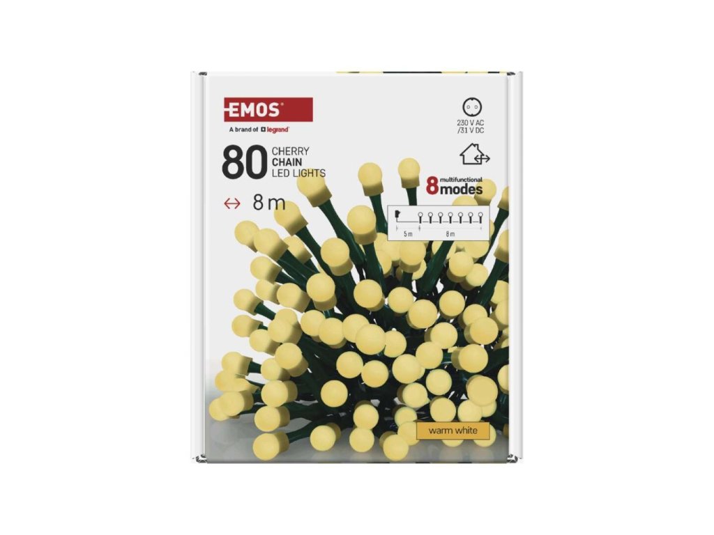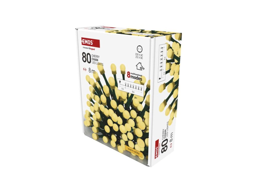 LED vánoční cherry řetěz – kuličky, 8 m, venkovní i vnitřní, teplá bílá, programy, časovač