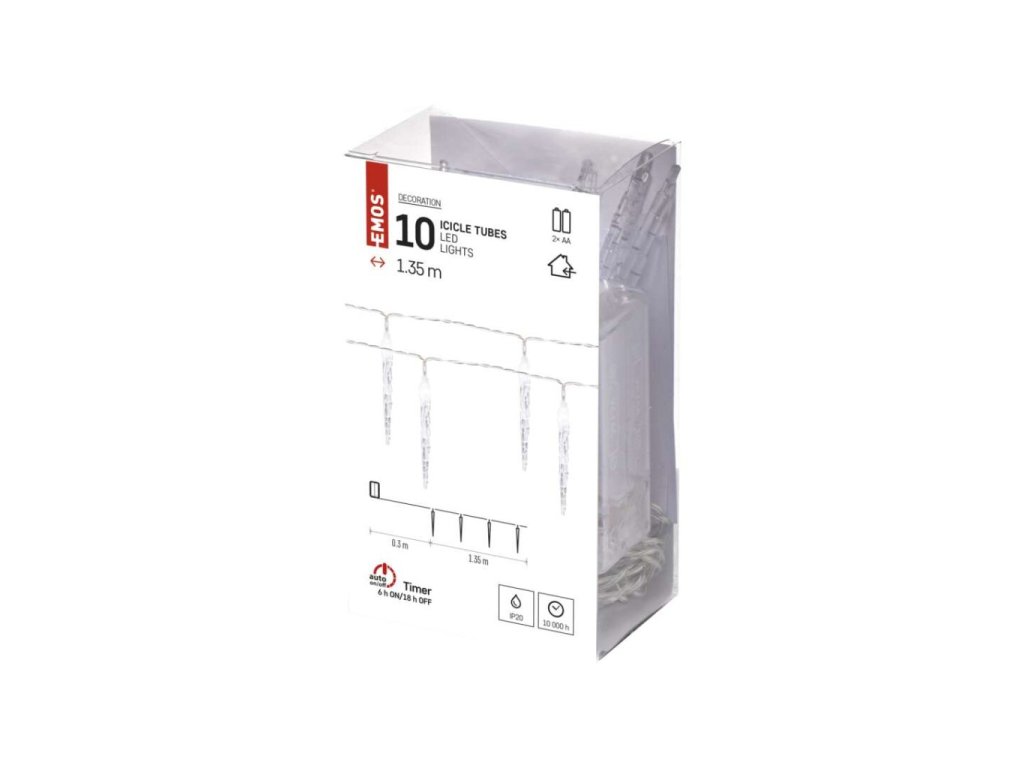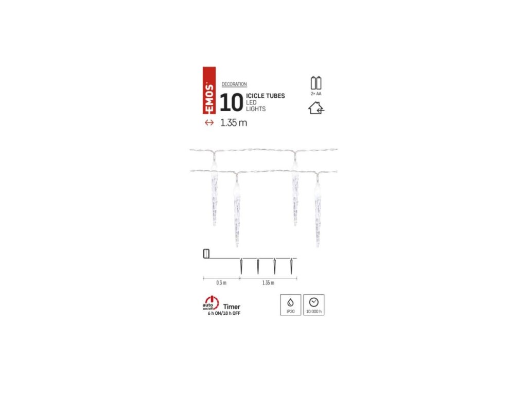 LED vánoční girlanda – 10x rampouch, 1,35 m, 2x AA, vnitřní, studená bílá, časovač