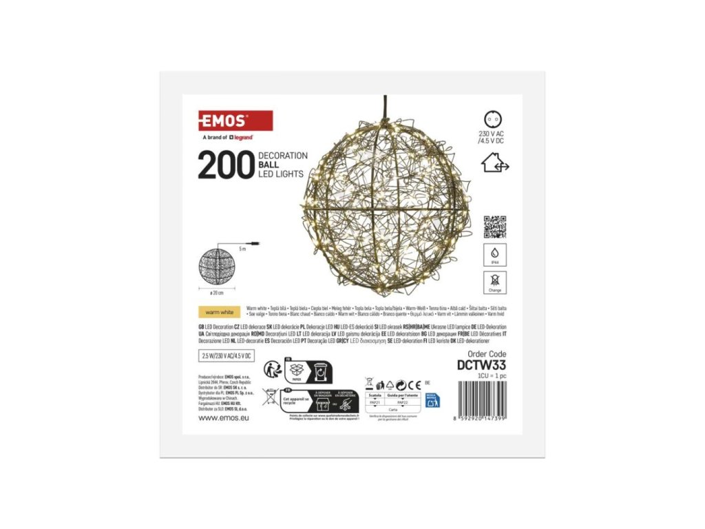 LED vánoční koule – 200 LED, venkovní i vnitřní, teplá bílá
