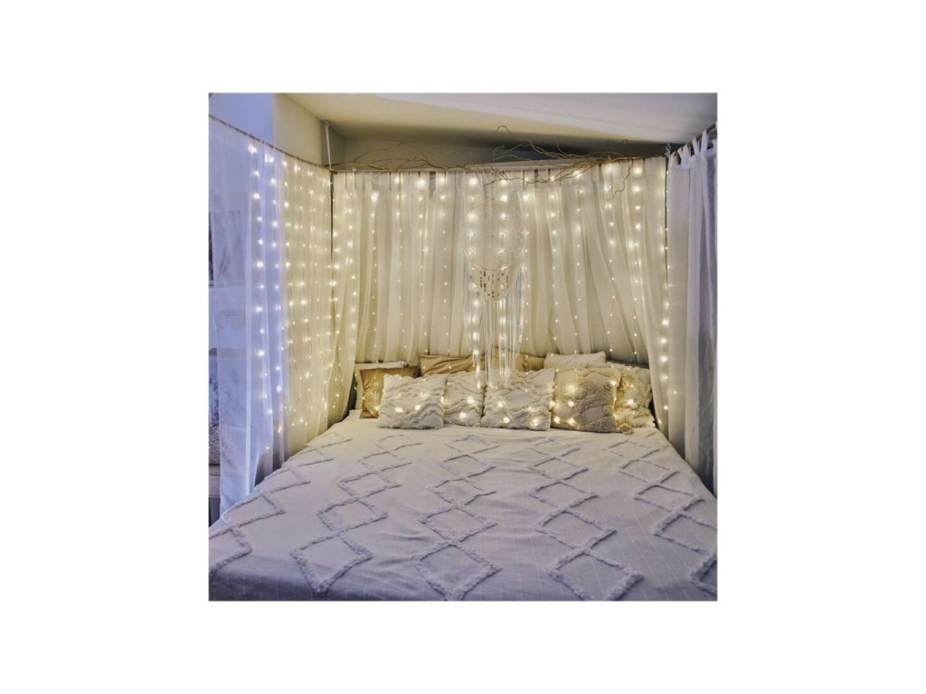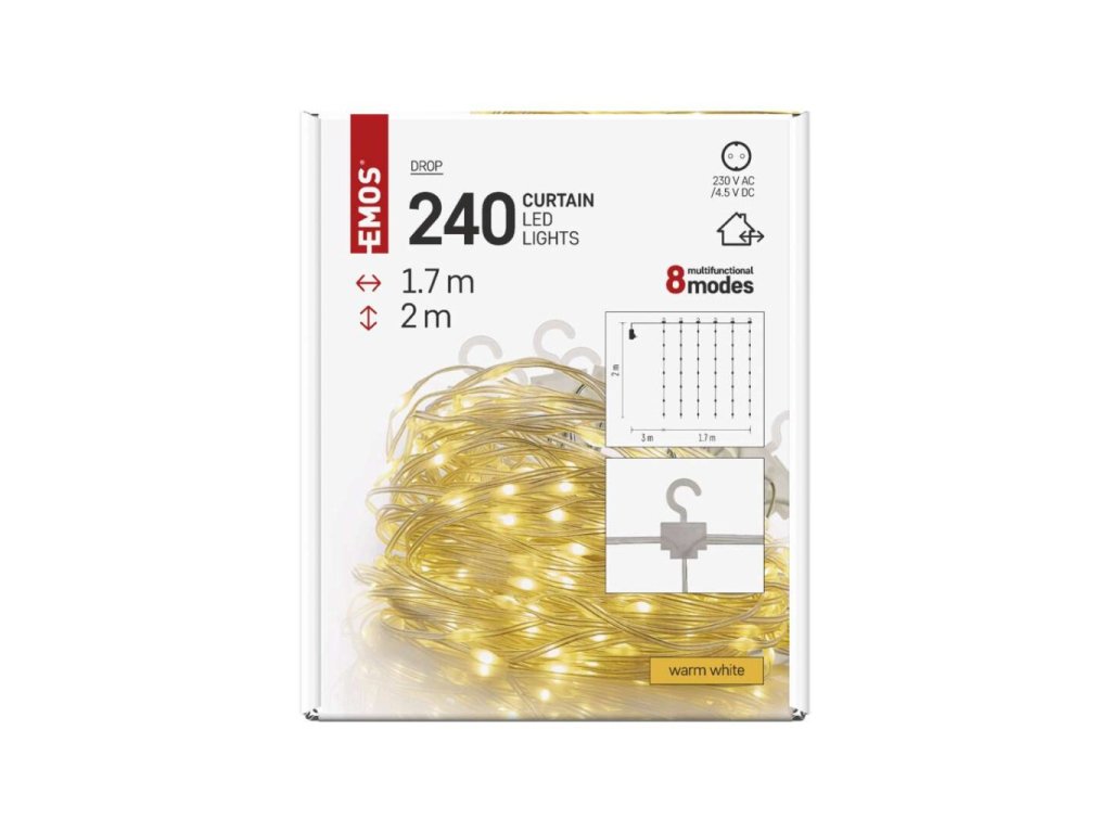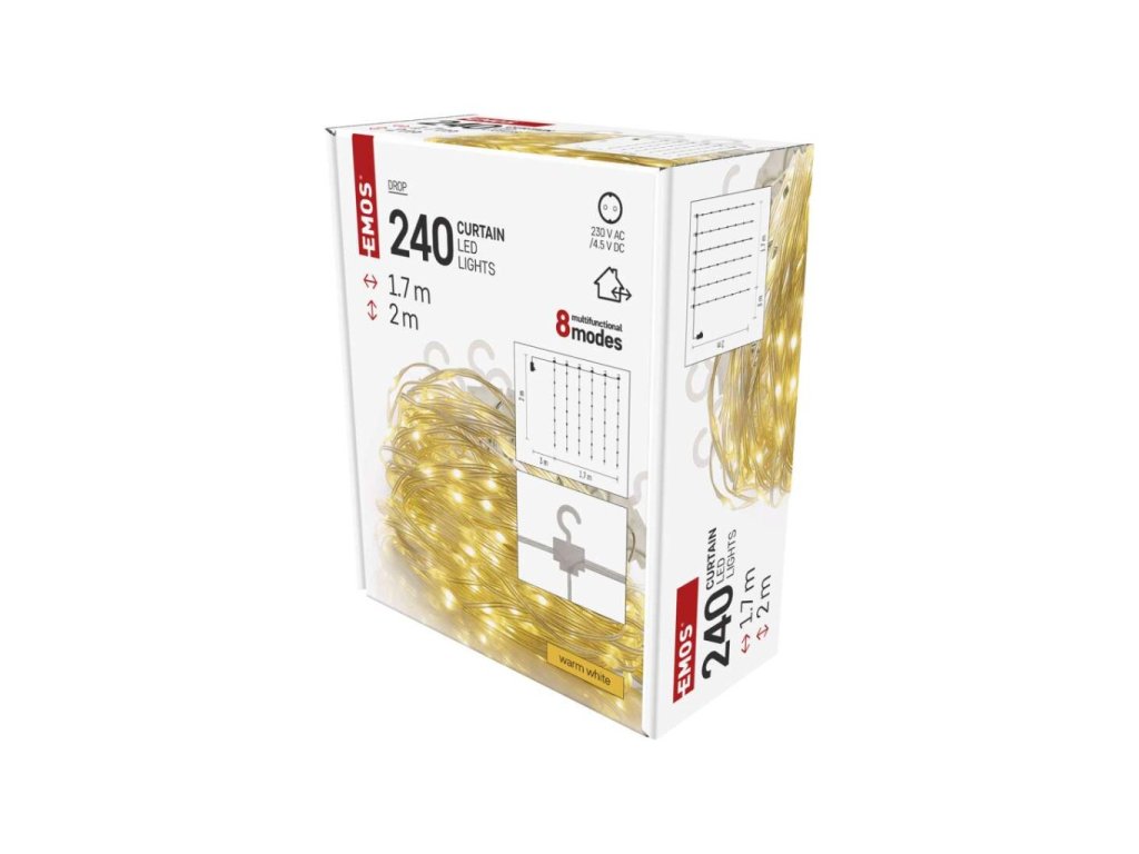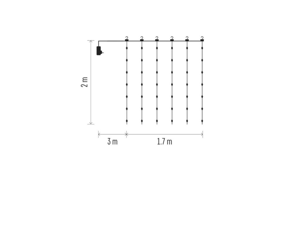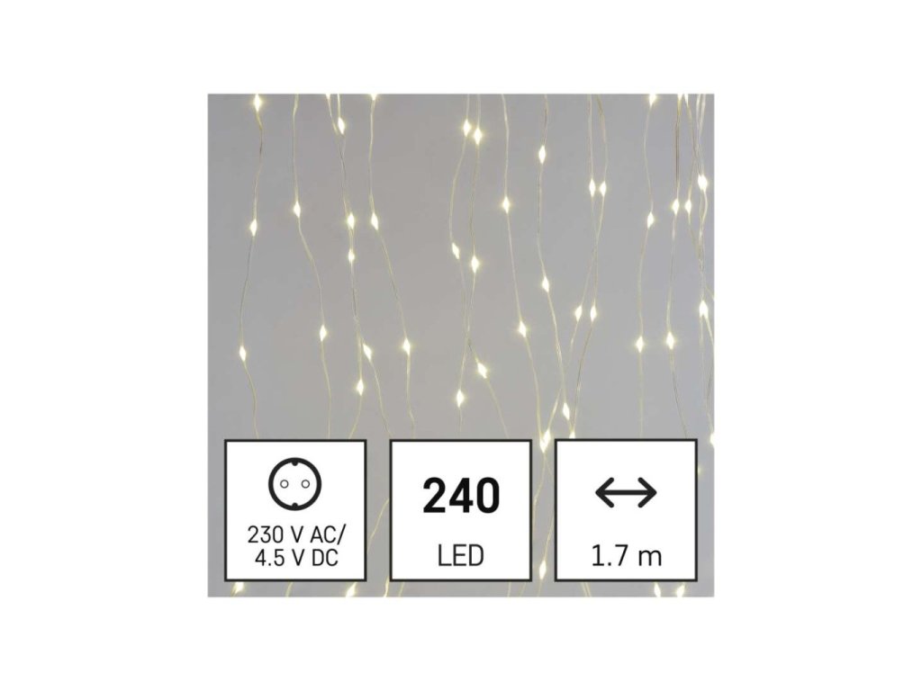 LED vánoční nano řetěz – záclona, 1,7x2 m, venkovní i vnitřní, teplá bílá, programy