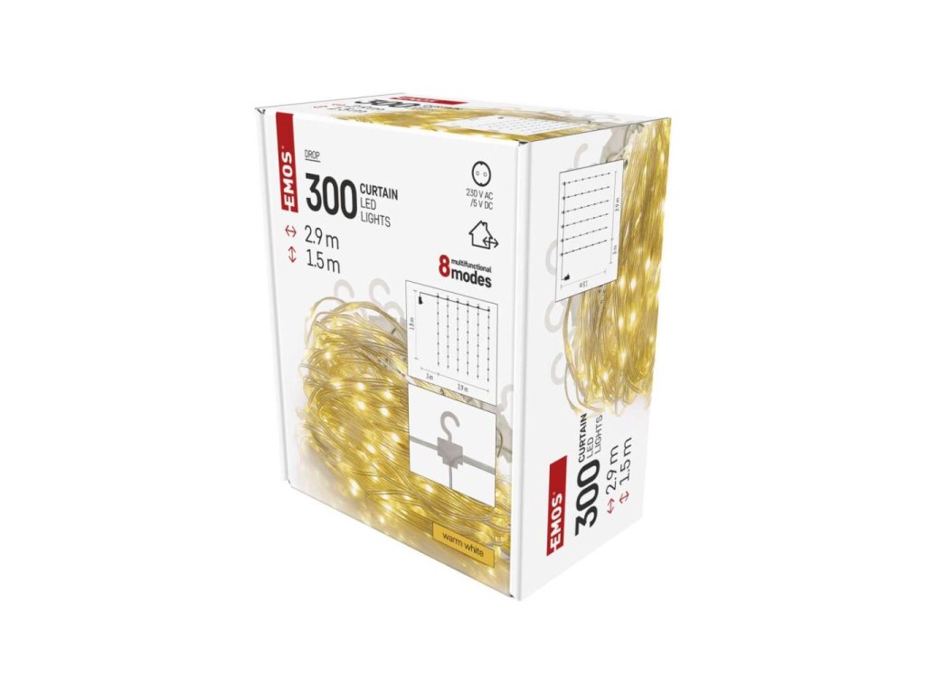 LED vánoční nano řetěz – záclona, 2,9x1,5 m, venkovní i vnitřní, teplá bílá, programy