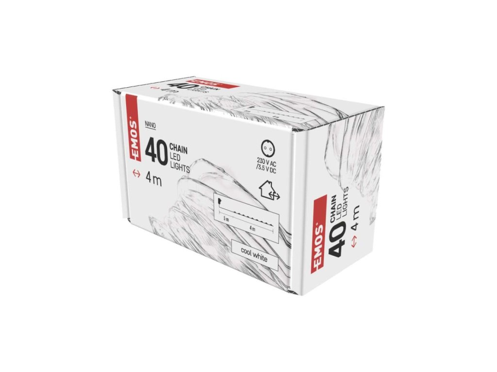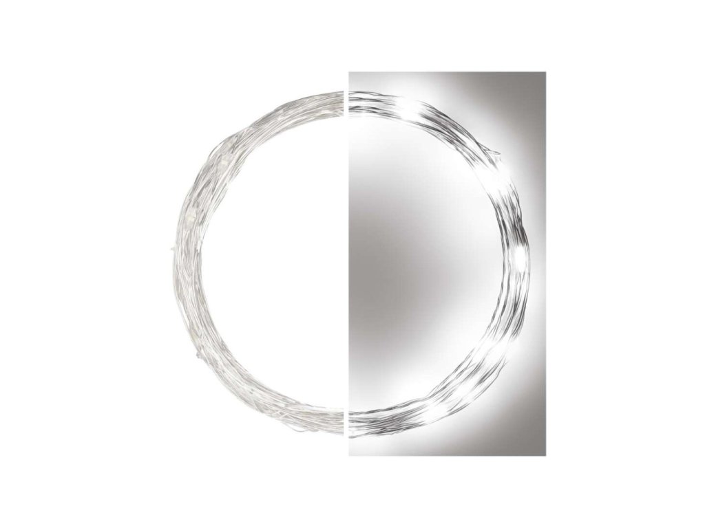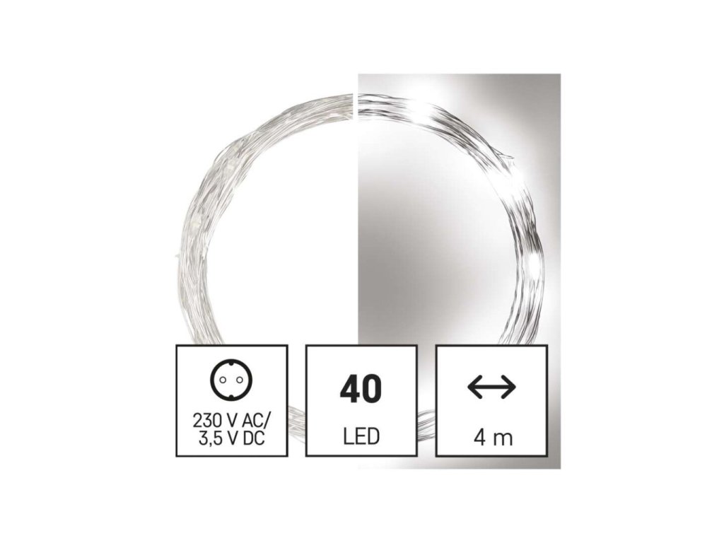 LED vánoční nano řetěz stříbrný, 4 m, venkovní i vnitřní, studená bílá, časovač