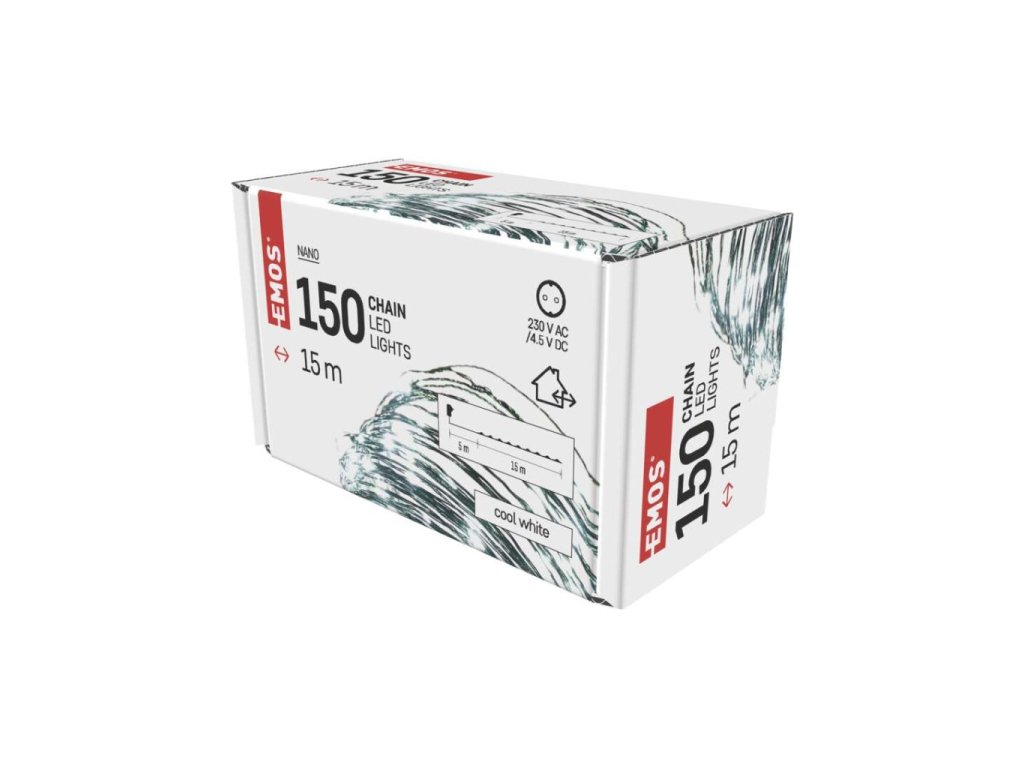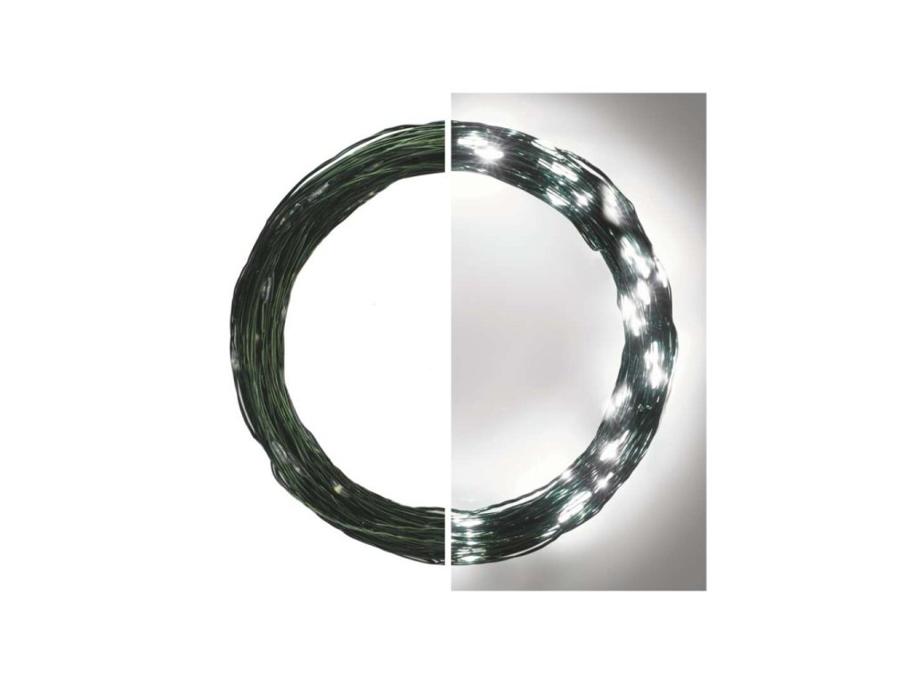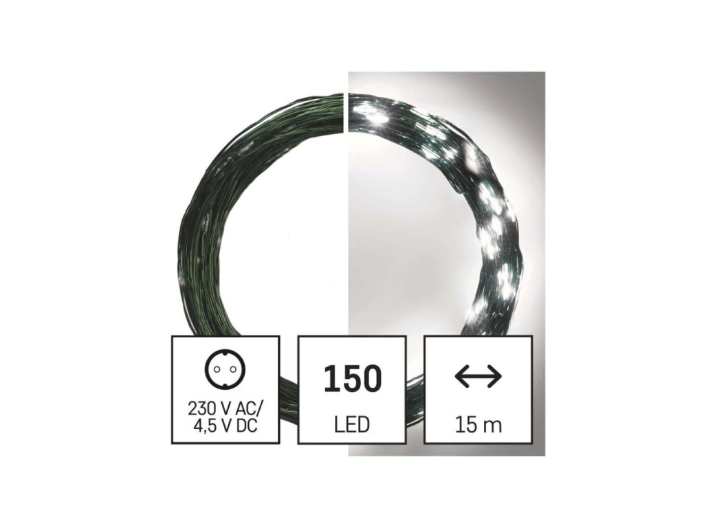 LED vánoční nano řetěz zelený, 15 m, venkovní i vnitřní, studená bílá, časovač