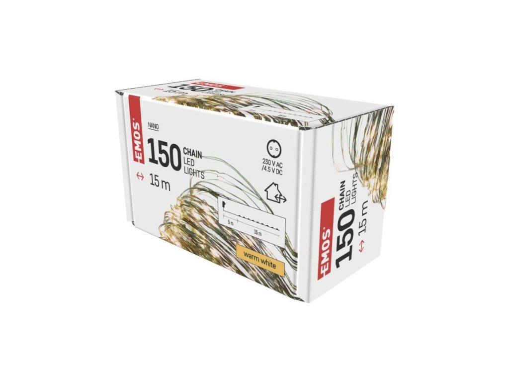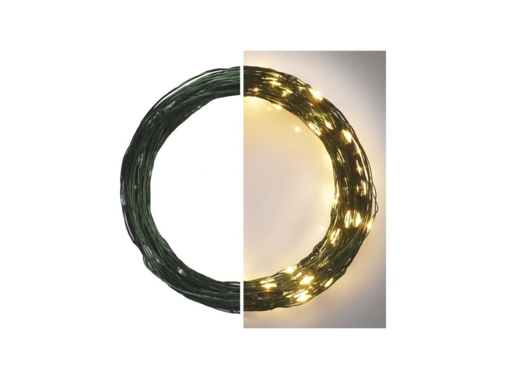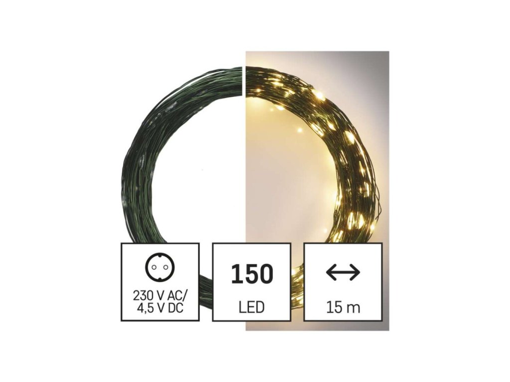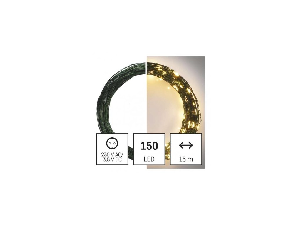 LED vánoční nano řetěz zelený, 15 m, venkovní i vnitřní, teplá bílá, časovač
