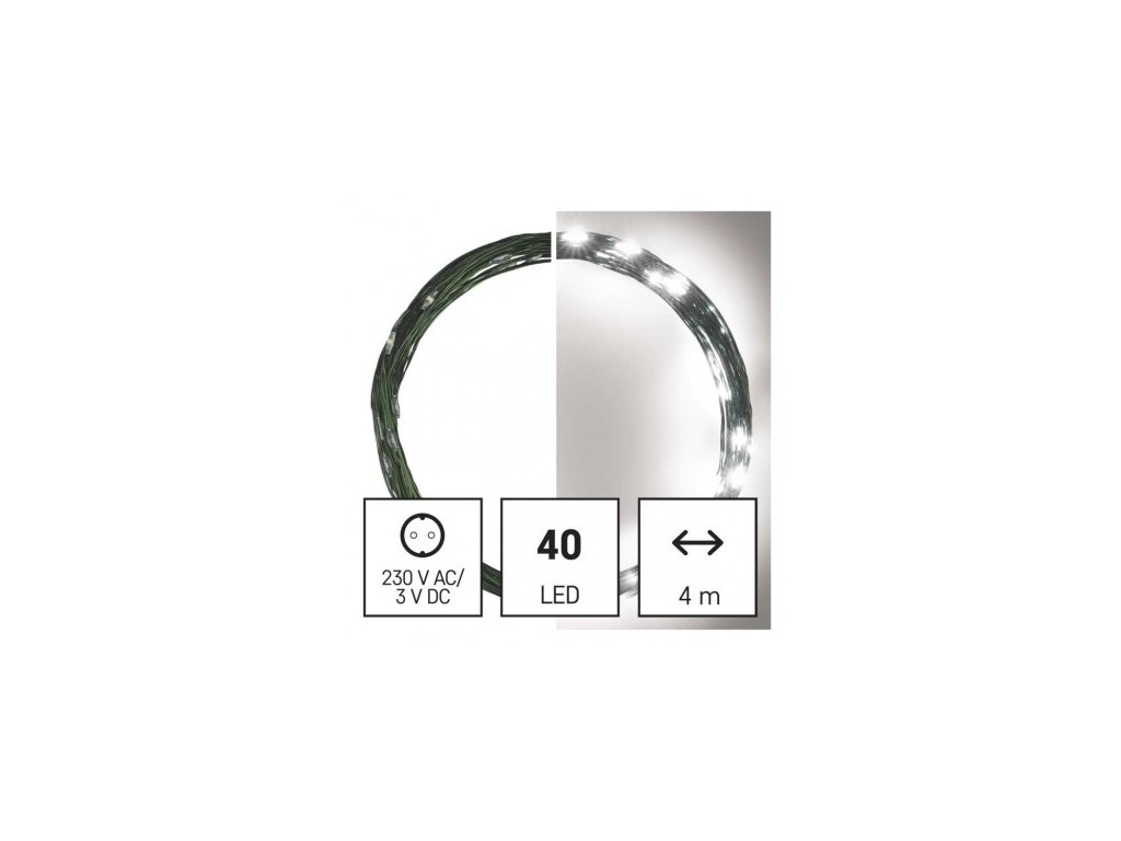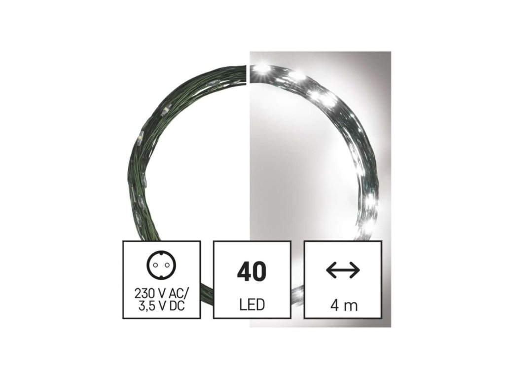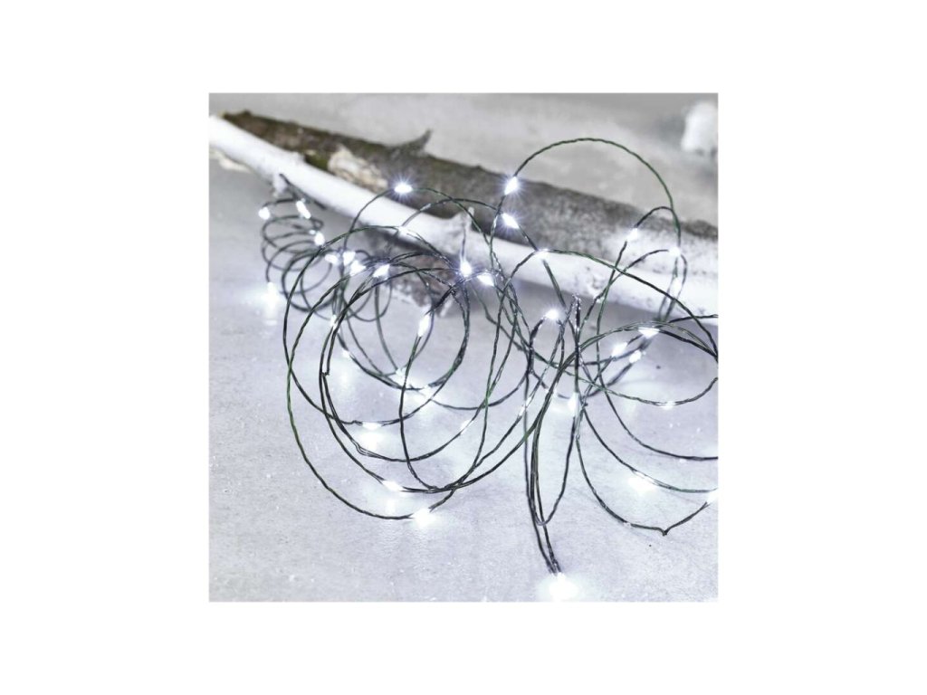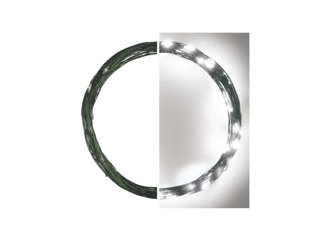 LED vánoční nano řetěz zelený, 4 m, venkovní i vnitřní, studená bílá, časovač
