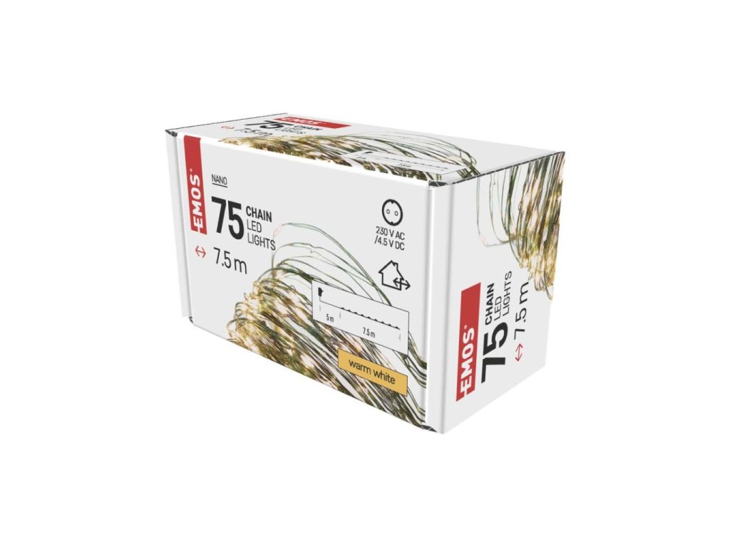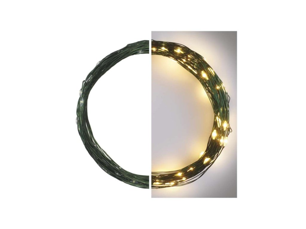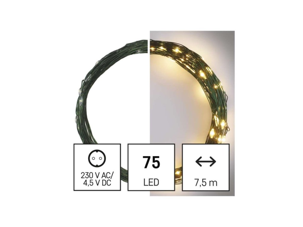 LED vánoční nano řetěz zelený, 7,5 m, venkovní i vnitřní, teplá bílá, časovač