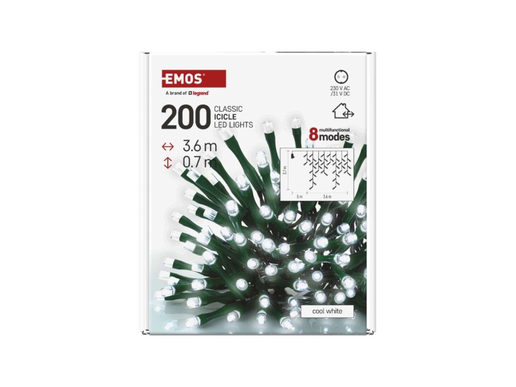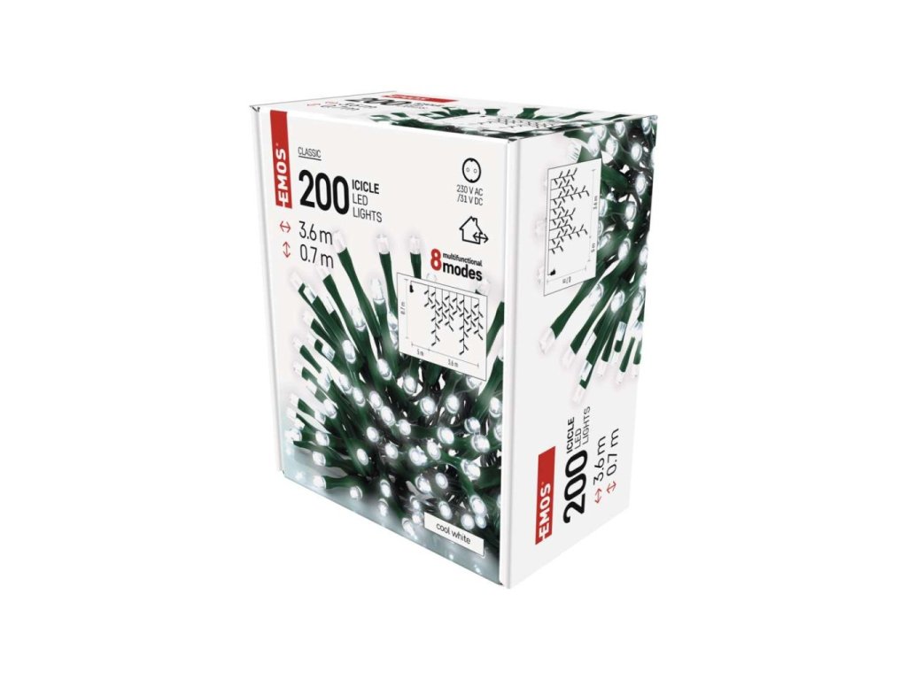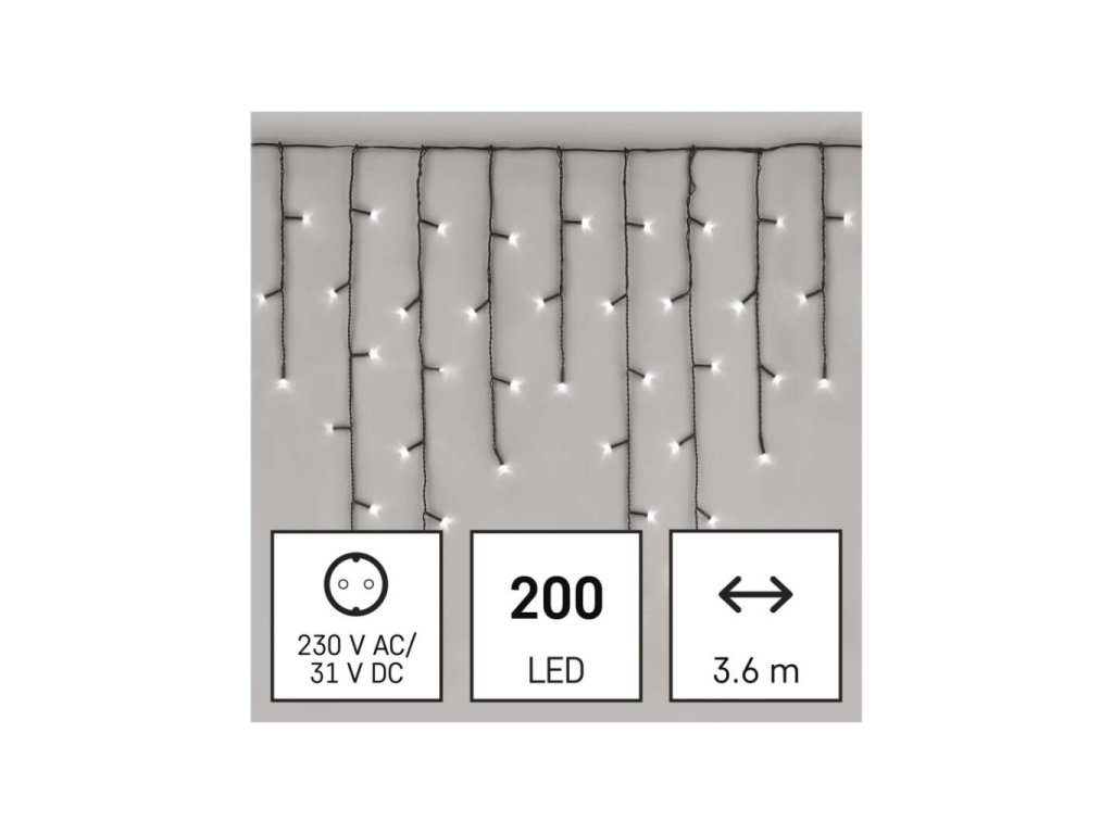 LED vánoční rampouchy, 3,6 m, venkovní i vnitřní, studená bílá, programy