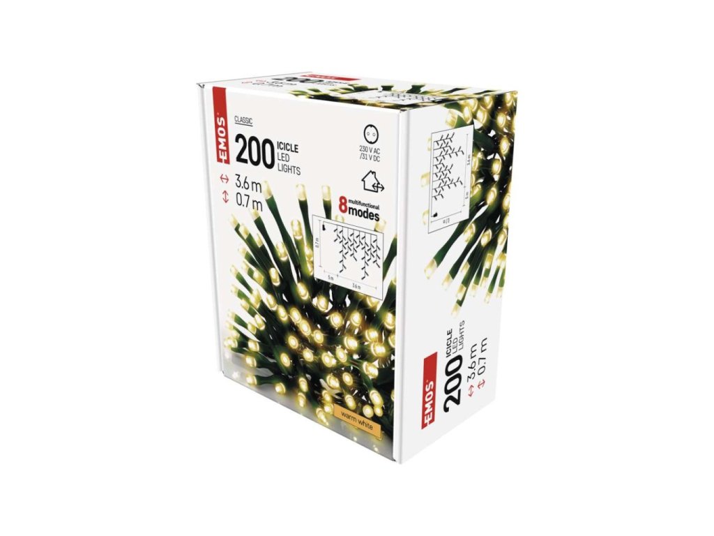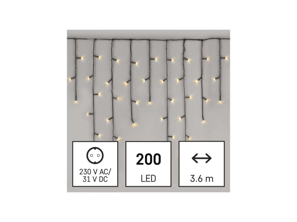 LED vánoční rampouchy, 3,6 m, venkovní i vnitřní, teplá bílá, programy