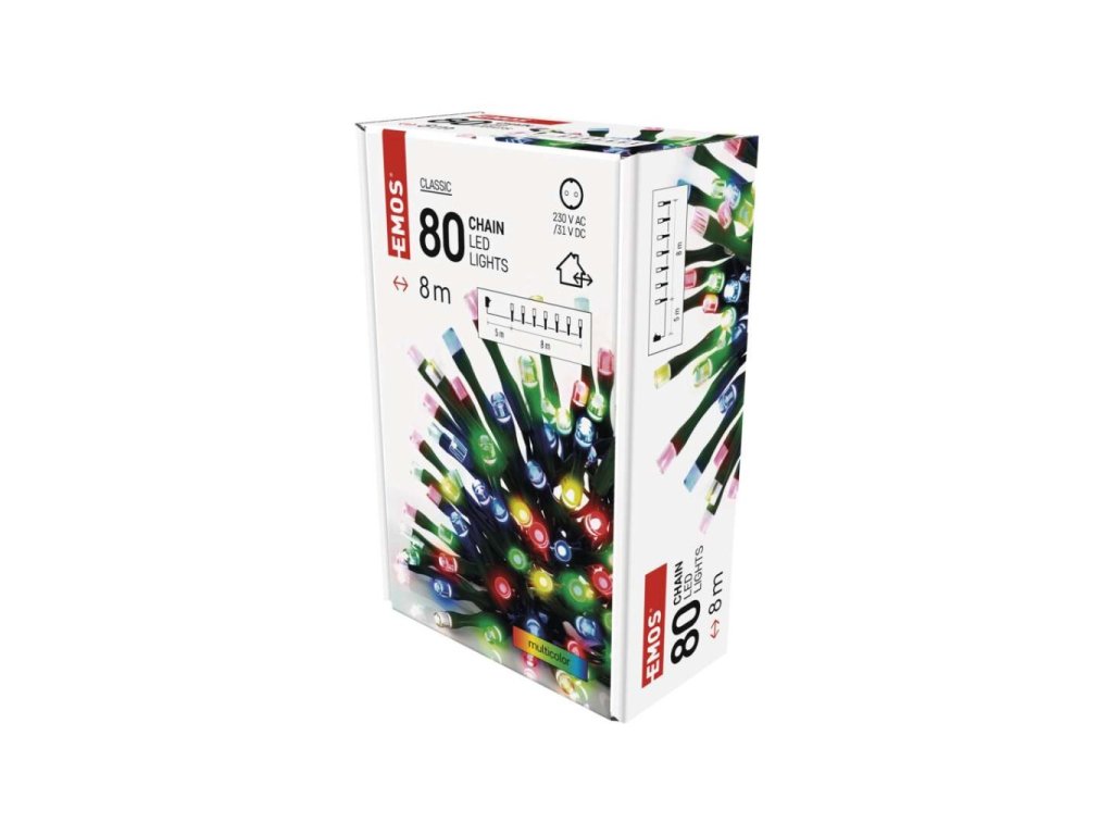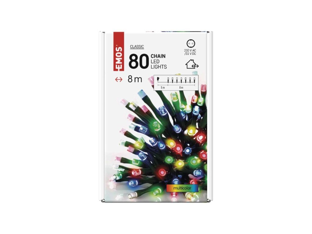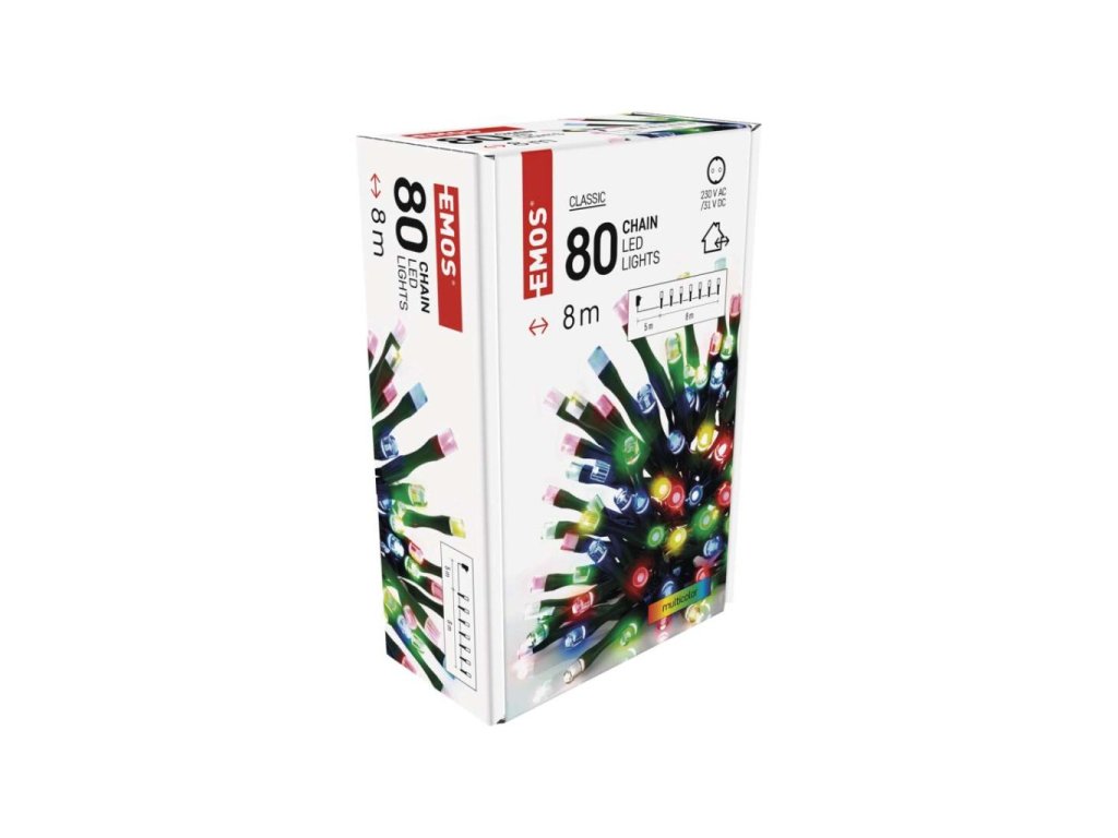 LED vánoční řetěz, 8 m, venkovní i vnitřní, multicolor, časovač