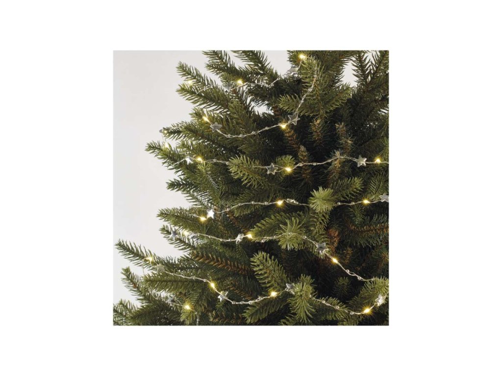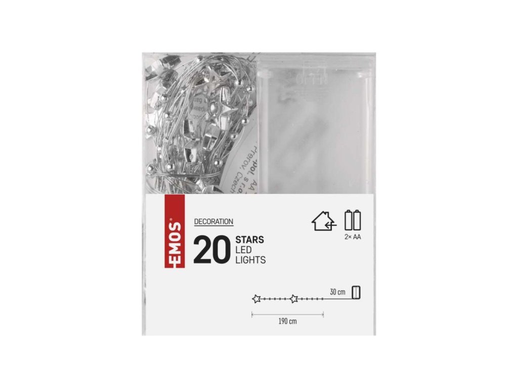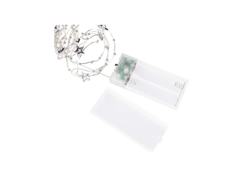 LED vánoční řetěz stříbrný – hvězdičky, 1,9 m, 2x AA, vnitřní, teplá bílá, časovač