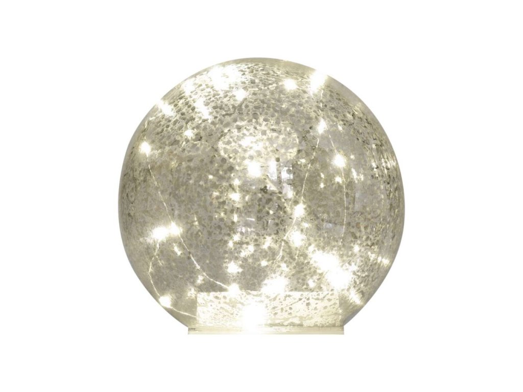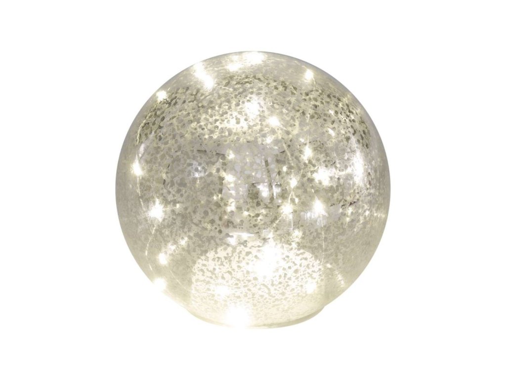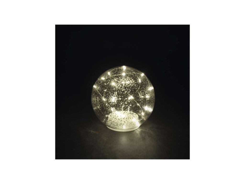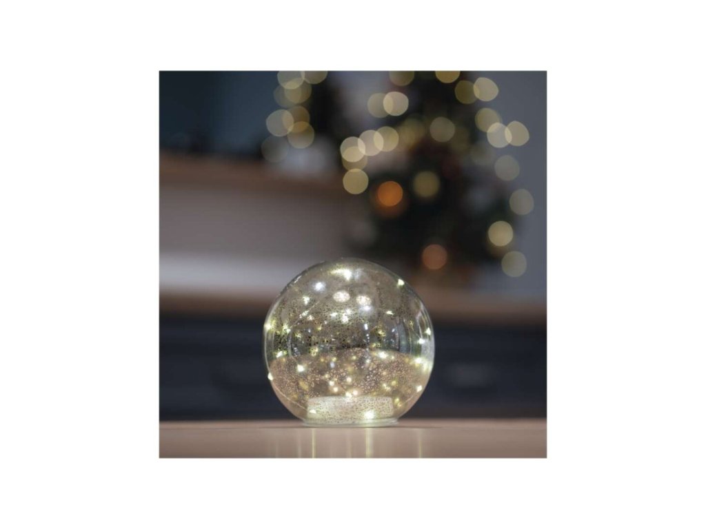 LED vánoční skleněná koule – zlatá, 15 cm, 3x AA, vnitřní, teplá bílá, časovač