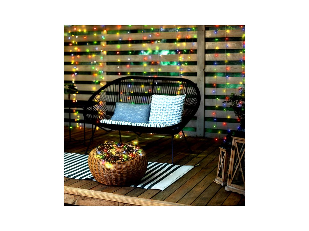 LED venkovní vánoční řetěz, 300 LED, 30m, přívod 5m, 8 funkcí, časovač, IP44, vícebarevný